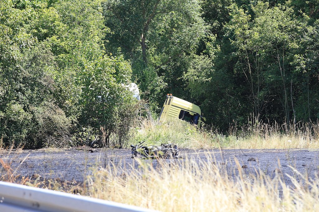 Die LKW-Fahrerin kam mit ihrem Sattelzug nach rechts von der Fahrbahn ab und landete in einem angrenzenden Graben. Der Motorradfahrer wurde bei dem Unfall tödlich verletzt, die LKW-Fahrerin erlitt einen Schock. Zur Unfallaufnahme musste die Landstraße voll gesperrt werden.