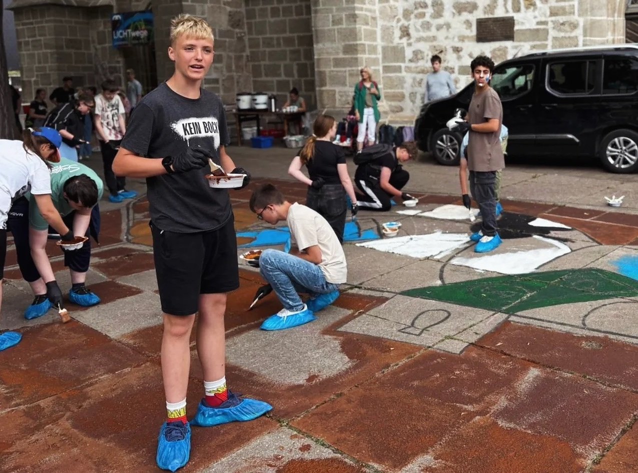 Besonders kreativ wurde es bei der gemeinsamen Aktion vor der Blasiikirche, bei der ein großes Bild gestaltet wurde. Zum Abschluss gab’s für alle noch einen erfrischenden Brausesegen! Ein Tag voller Impulse, Austausch und Wertschätzung – danke an alle Beteiligten!