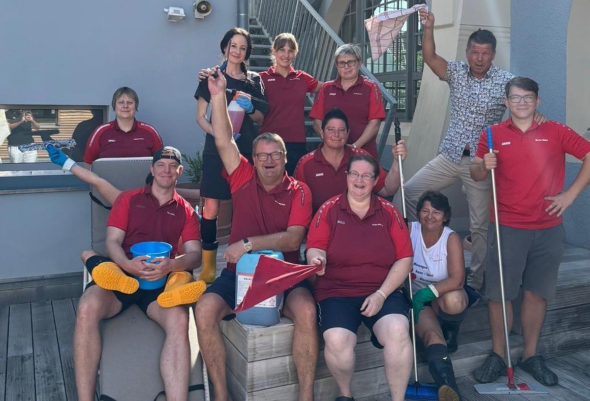 Kurz nahm sich ein Teil des Badehaus-Teams am letzten Revisionstag Zeit für ein gemeinsames Foto: GESCHAFFT! (Foto: Badehaus Nordhausen GmbH)