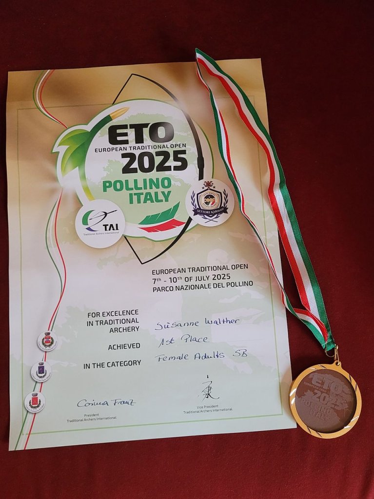 Vom 7.-10. Juli fand in Italien im Nationalpark von Pollino die ETO (European Traditional Open) des T.A.I. (Traditional Archers International) statt. Susanne Walther vertrat bei dieser Meisterschaft das Bowteam Nordhausen...