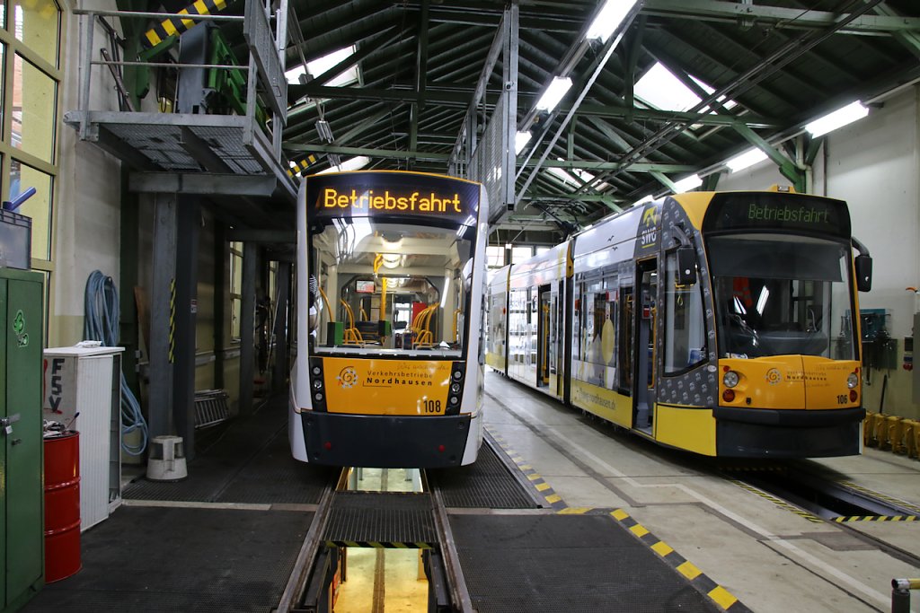 Technologieoffen soll nach Lösungen gesucht werden, so der Minister weiter, es gelte die goldene Mitte zu finden. Unter anderem erprobt man auf einer Teilstrecke den Batteriebetrieb, in Nordhausen läuft der Combino Duo seit langem erfolgreich mit einem Dieselaggregat. Zum Nordhäuser Modell ließ sich Schütz detailreich informieren und durfte auch einmal unter eine der Nordhäuser Bahnen klettern. Zu den Informationen gehört auch, dass die Kleinserie der Diesel-Hybride in der Anschaffung recht teuer ist und man in Zukunft sehen müsse, was der Markt hergibt, gab Straßenbahnchef Thorsten Schwarz zu bedenken. Auch eine Elektrifizierung von Bahnstrecken ist denkbar, entscheidend ist, was die Kostenrechnung am Ende ergibt.