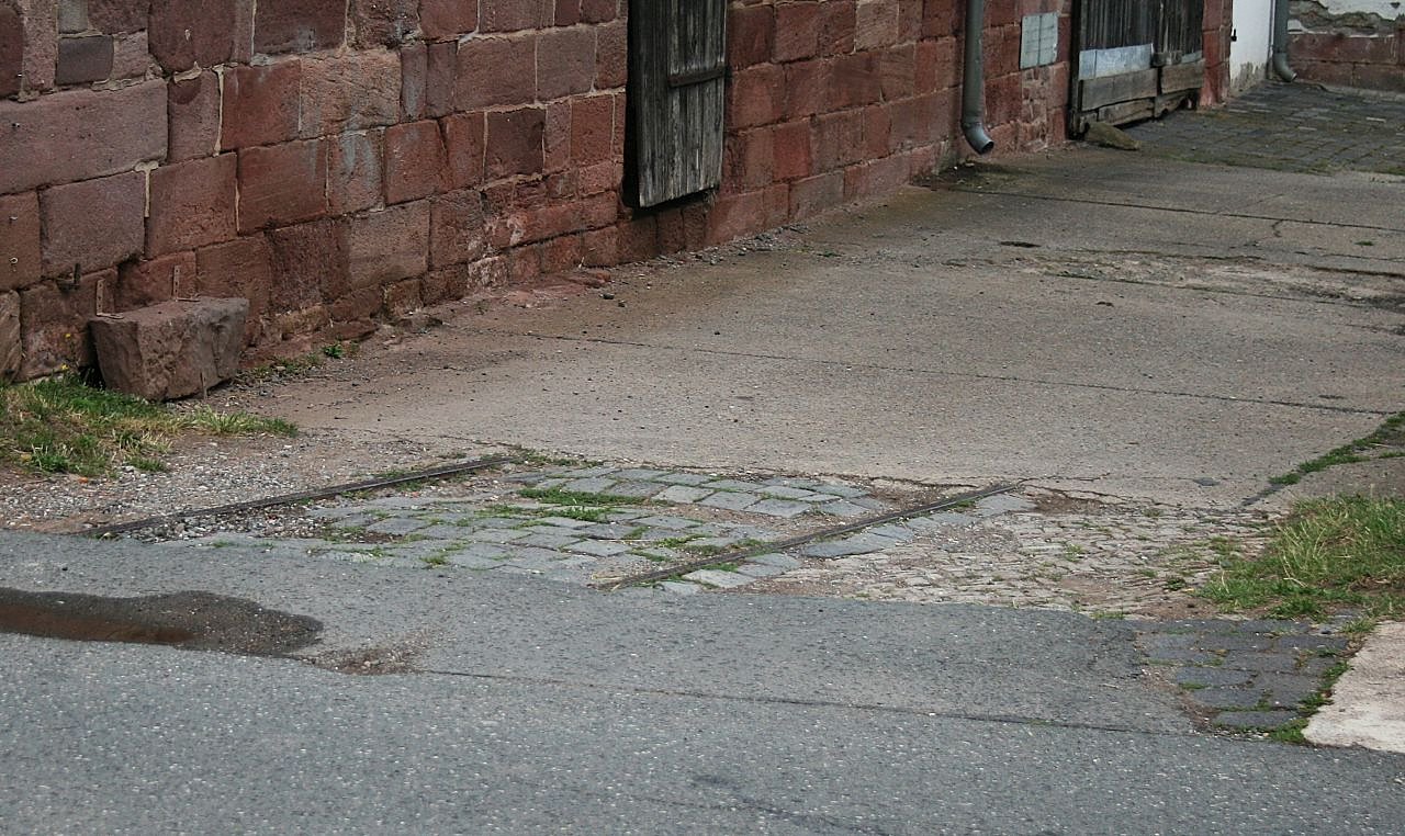 Die Reste der Gleise der Kyffhäuser- Kleinbahn, die einst zur ehemaligen Brauerei Joch, über die Dartenstrasse führten, sind bis heute zu sehen. Ulrich Reinboth hat sie gefunden...
