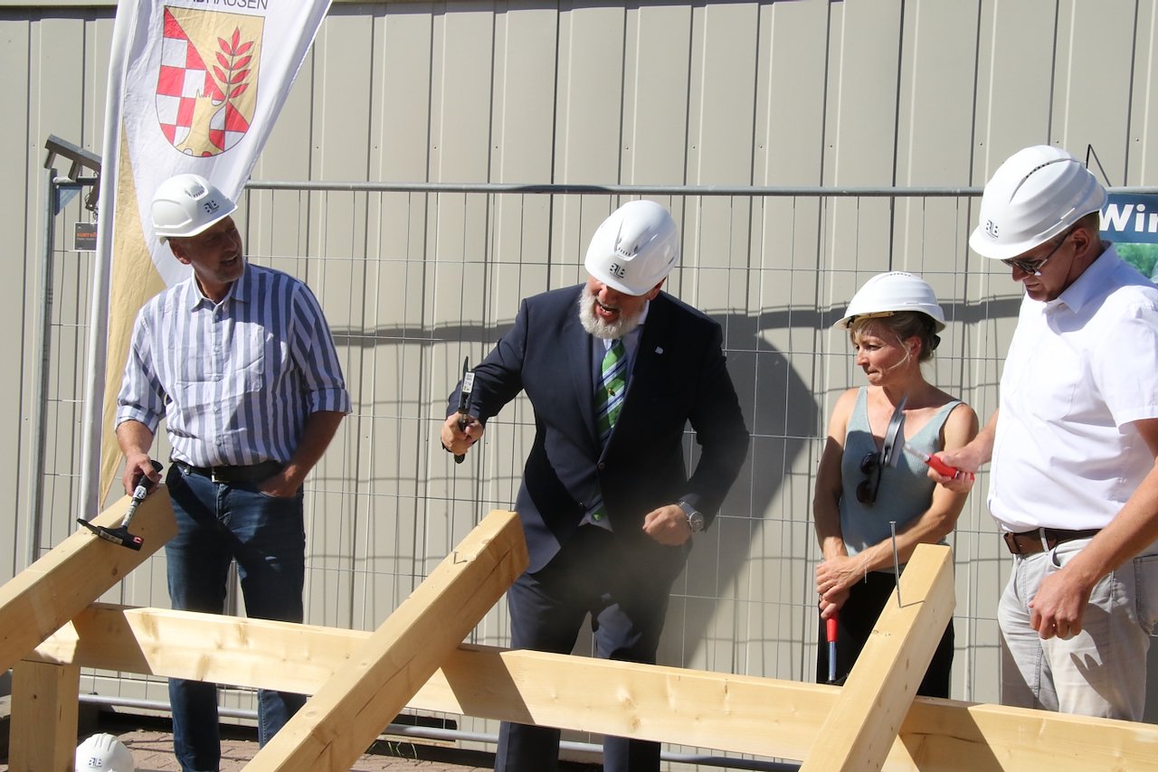 Wenn es früher etwas "aufzurichten" gab kam das ganze Dorf zusammen und am Ende wurde ordentlich gefeiert. Zum Richtfest an der Ilfelder Grundschule war heute vielleicht nicht gleich der ganze Ort gepilgert, die Freude über den schmucken neuen Holzbau war aber dennoch greifbar...