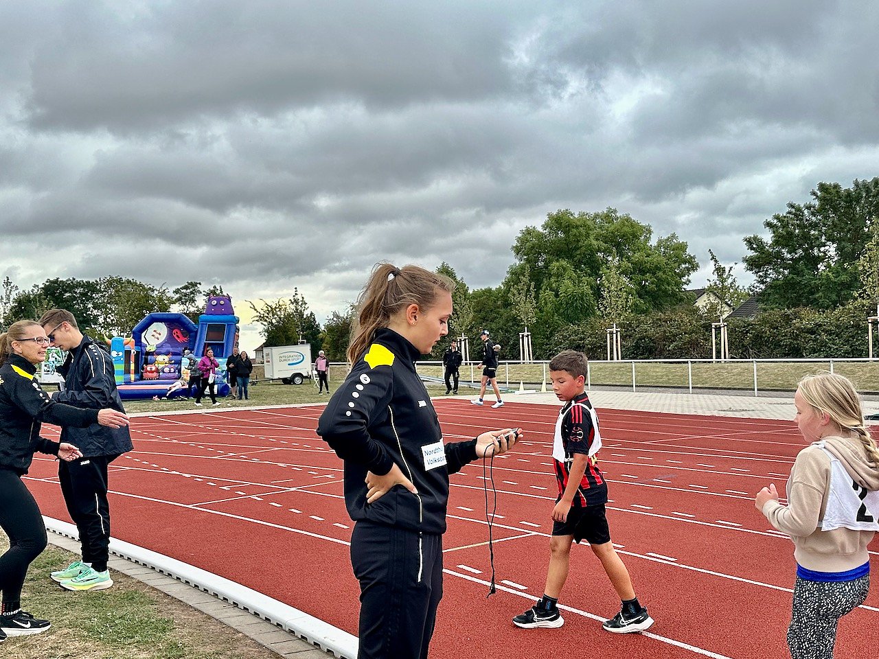 Nach der offiziellen Begrüßung starteten die Teilnehmenden gemeinsam in den Tag: Punkt 9:15 Uhr fiel der Startschuss für eine 400-Meter-Runde, die alle zusammen absolvierten. Anschließend nutzten sie die Gelegenheit, Disziplinen für das Deutsche Sportabzeichen zu absolvieren.