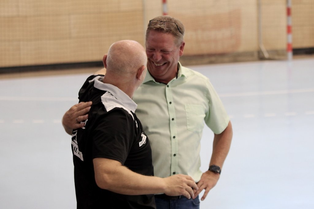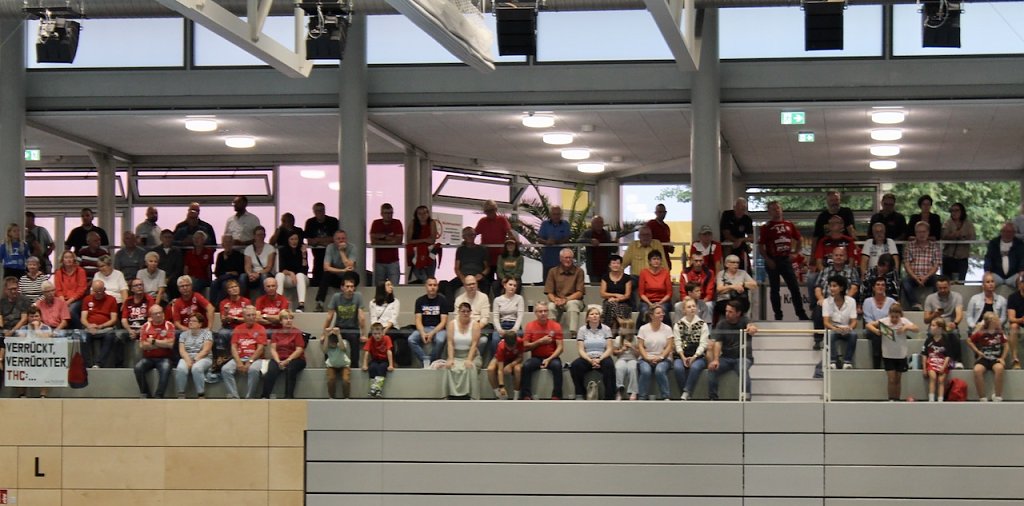Damit diese Liebe ein Leben lang halten kann und nicht wie beim amtierenden Deutschen Meister HB Ludwigsburg von heute auf morgen zerplatzt wie ein kaputter Ball bedarf es außer einer guten Mannschaft vieler Helfer, Unterstützer und Sponsoren im Hintergrund. Und natürlich der treuen Fans, die sich heute zu Recht von den Verantwortlichen des Vereins so feiern ließen, wie sie sonst das Team auf dem Parkett bejubeln. Die Gesellschafter Helmut Peter und Robert Böhm waren gekommen, der Bürgermeister der EHF-Pokalsiegerinenstadt, Matthias Reinz, und auch Ex-Landrat Harald Zanker präsentierte sich erstmals in neuer Funktion als Präsident des THC.