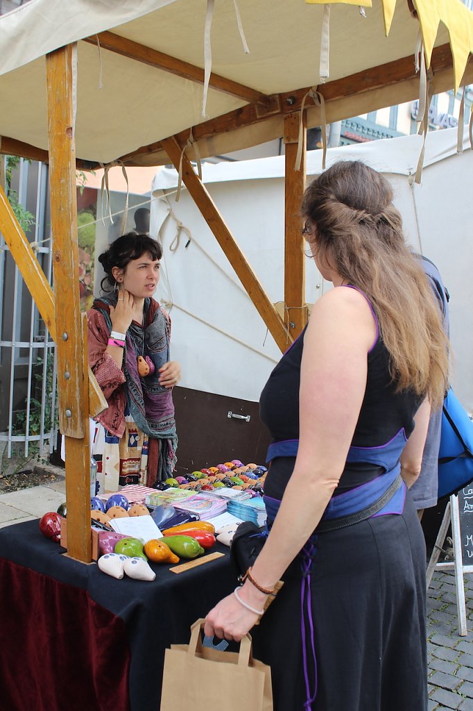 Niemand hat die Absicht, etwas zu verhindern, was sich zu einem solchen Schatz entwickelt hat, erwiderte Matthias Reinz, aber es müssten sich alle g e m e i n s a m einsetzen, damit das Fest weiter über die Stadtgrenzen hinaus berühmt gemacht werde. Das war fast ein schönes Schlusswort zur Eröffnung, aber der Herold wäre nicht der Herold, wenn er nicht das letzte Wort behalte hätte: Greift nicht die Personen an, sondern fördert tatkräftig die Sache!, rief er den versammelte Leuten auf dem Töpfermarkt zu. Zum Dank erhielt er viel Applauso" für seine Worte und das bunte Treiben nimmt seitdem seinen Lauf.