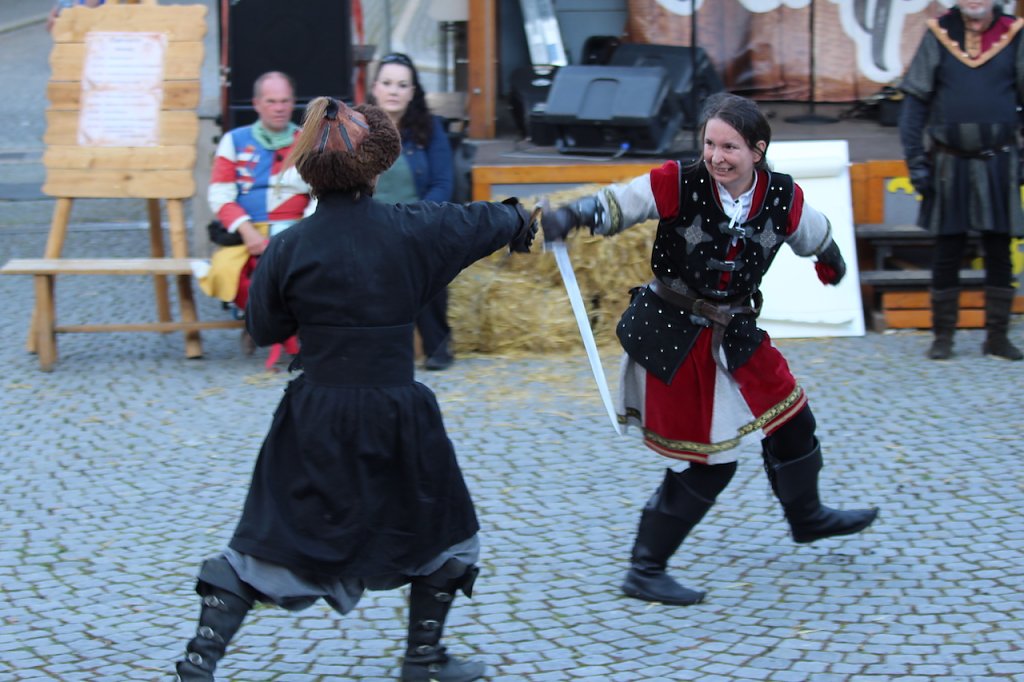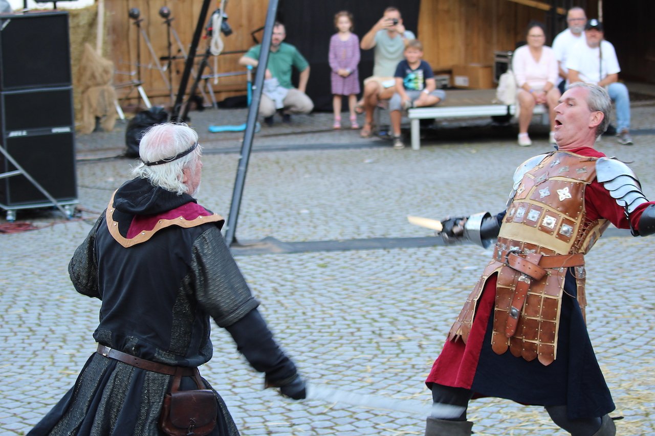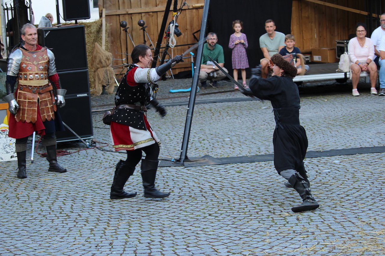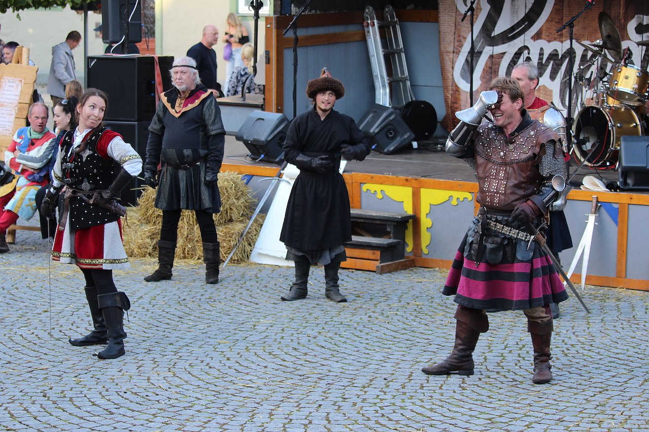 Überall wabern leckere Gerüche durch die historische Innenstadt und die Klänge gediegener akustischer Instrumente erfüllen Gassen und Plätze. In unserer Fotogalerie präsentieren wir Ihnen auch Impressionen der Rittergruppe Herold, die auf dem Töpfermarkt die Klingen kreuzt und die Funken stieben läßt. Die Kämpfer (und die Kämpferin) aus Böhmen zeigen auch morgen noch Schaukämpfe in hoher Präzision und Dynamik.