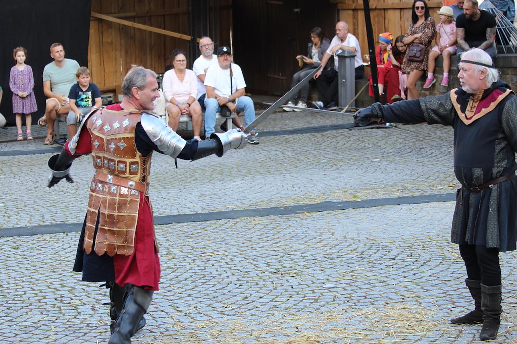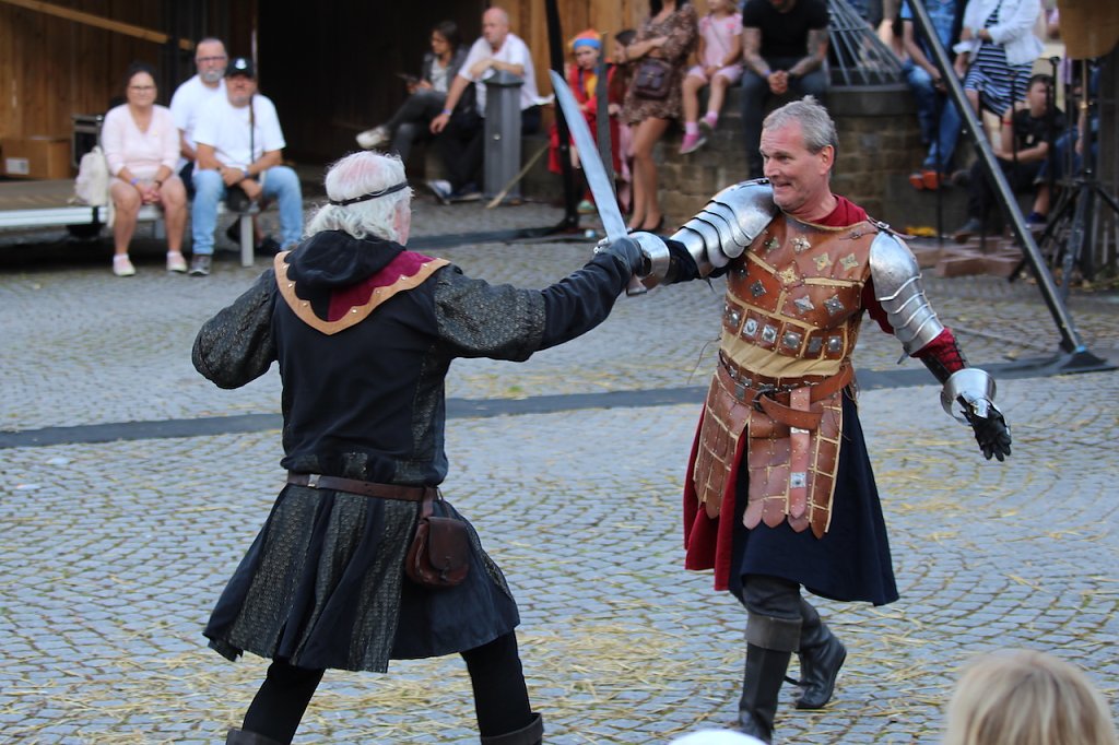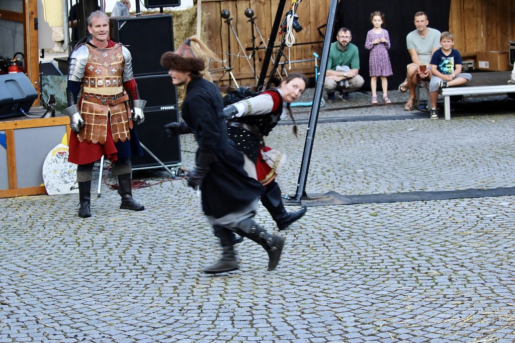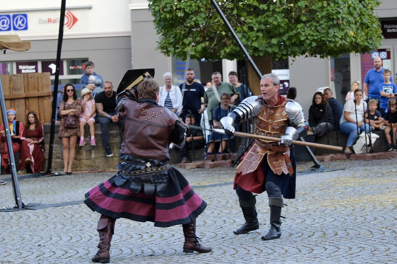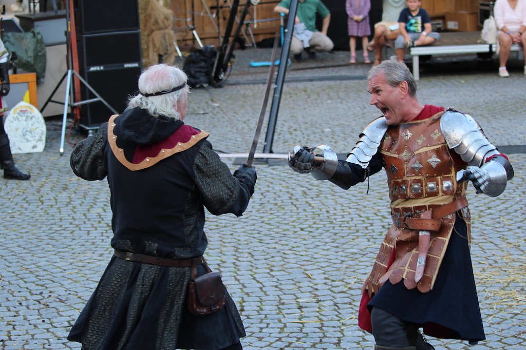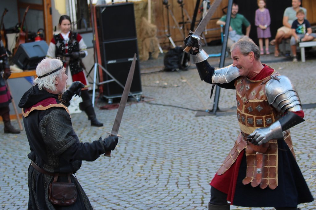 Überall wabern leckere Gerüche durch die historische Innenstadt und die Klänge gediegener akustischer Instrumente erfüllen Gassen und Plätze. In unserer Fotogalerie präsentieren wir Ihnen auch Impressionen der Rittergruppe Herold, die auf dem Töpfermarkt die Klingen kreuzt und die Funken stieben läßt. Die Kämpfer (und die Kämpferin) aus Böhmen zeigen auch morgen noch Schaukämpfe in hoher Präzision und Dynamik.