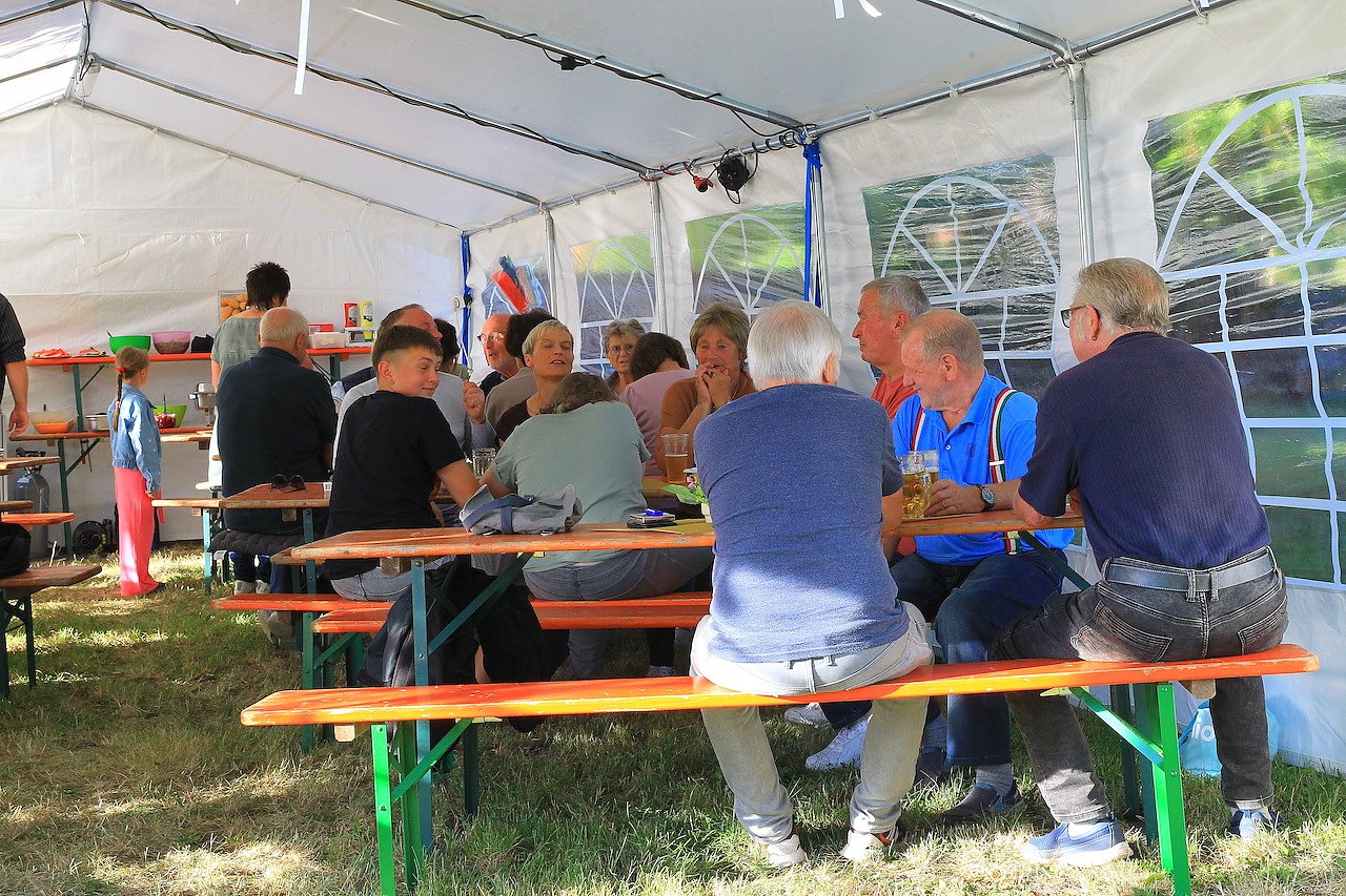Für Viele war der Weg zur Toilette doch recht weit. Natürlich kann man hier alles gut geplant auch schon ein paar Tage vorher aufbauen., denn Einige müssen schließlich auch Samstags arbeiten. An dieser Stelle gleich unseren herzlichen Dank an ALLE, die so fleißig geholfen haben, auch an die Gemeindearbeiter, die den Rasen mähten. Schon im Vorfeld danke an alle fleißigen Helfer, die später wieder alles mit wegräumen.