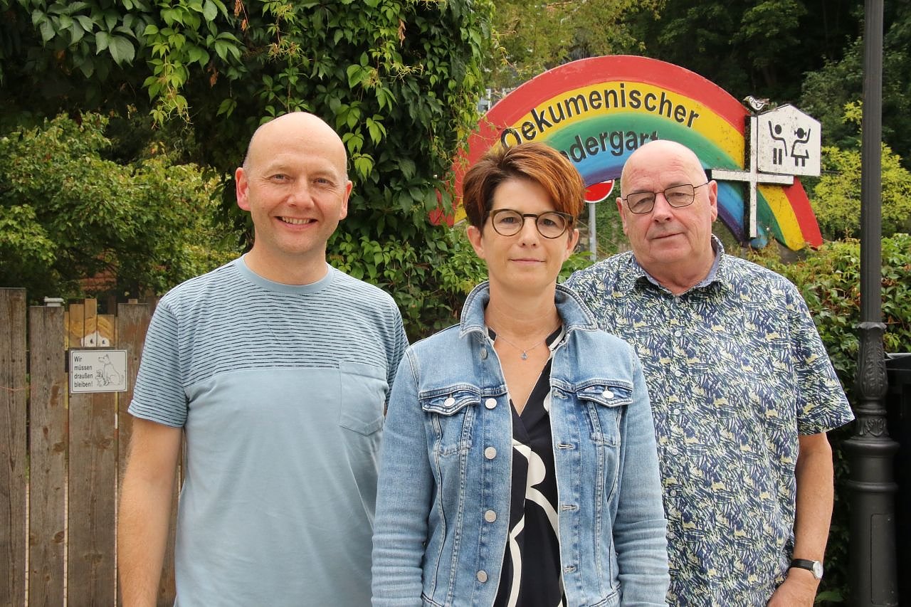 Auch in schweren Zeiten geht es am ökumensichen Kindergarten weiter, verischert die Hausleitung. v.l.: Thomas Günther, Elke Gulden und Norbert Klodt (Foto: ykh)