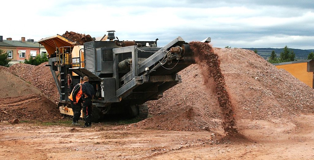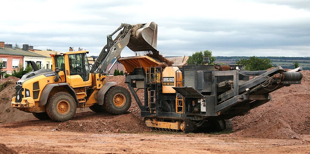 Vor Ort werden Steine zerkleinert und können weiter im Bauwesen verwewndet werden.Das ist nachhaltig.