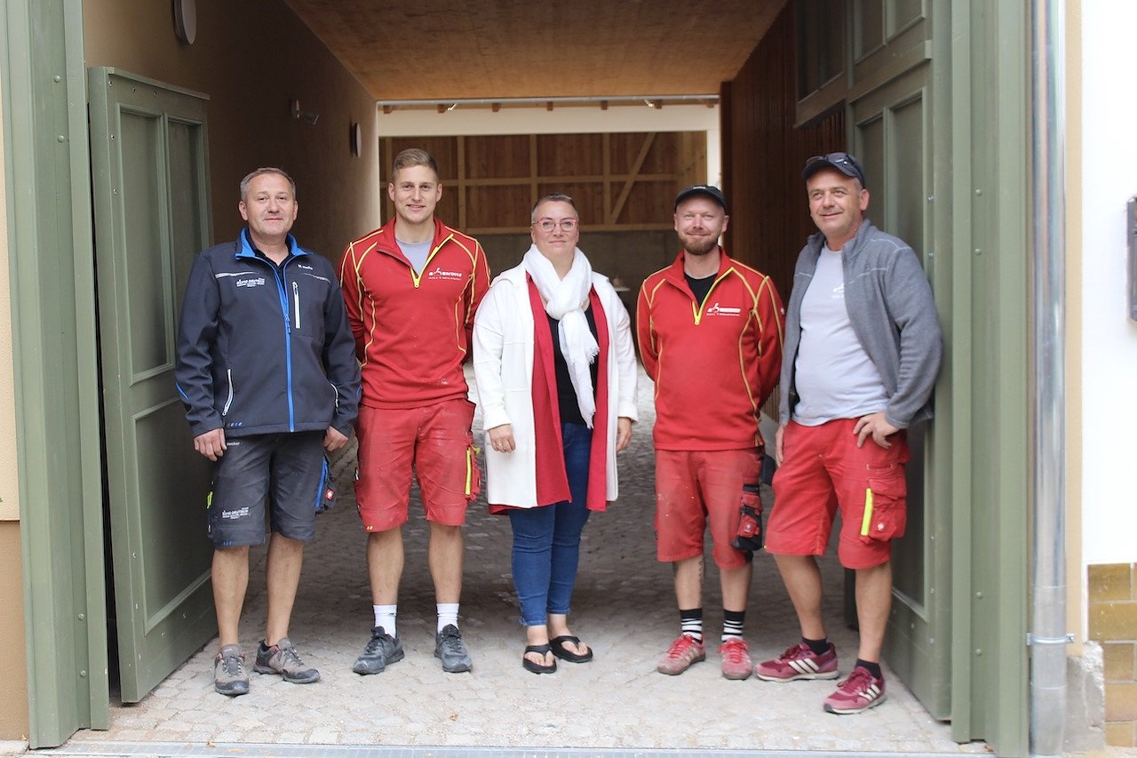 Alexandra Anton-Dollhofer inmitten "ihrer" Elektrikertruppe der Firma Blumschein (Foto: Eva Maria Wiegand)