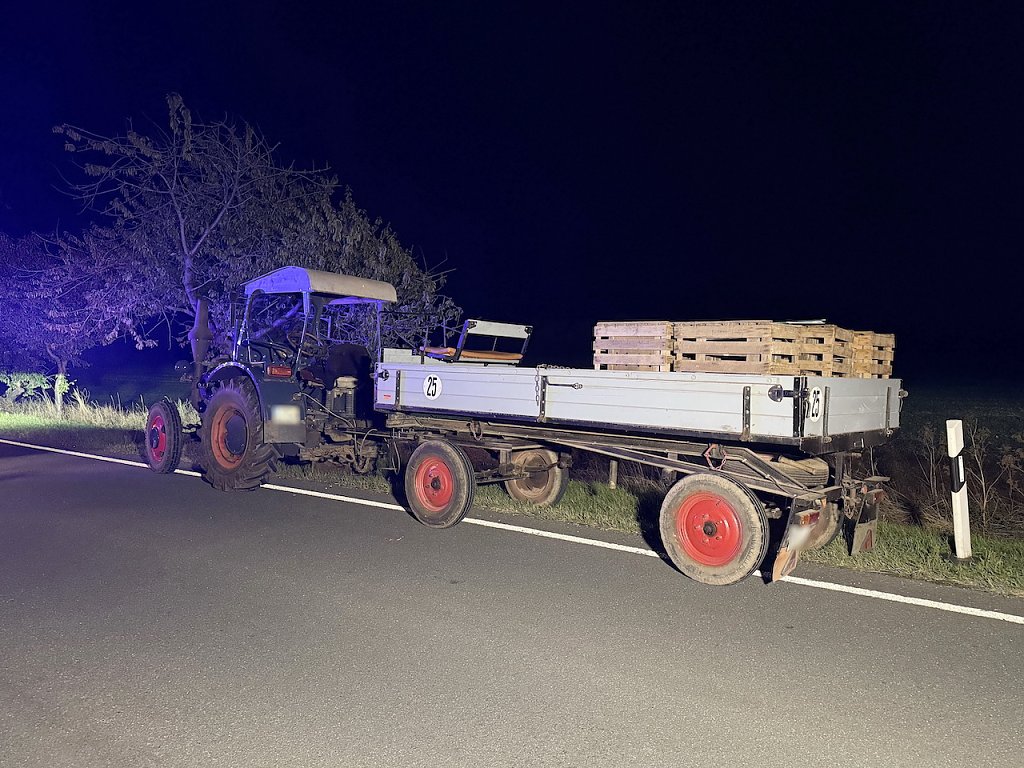 Auf dem Anhänger saßen eine 73-jährige Frau sowie ein 10-jähriges Kind. Nach Informationen der Polizei und von Zeugen war die Beleuchtung an dem Anhänger des Gespanns außer Funktion. Dies wurde einem 62-jährigen Motorradfahrer zum Verhängnis, der ebenfalls die Landstraße in Fahrtrichtung Landesgrenze befuhr.