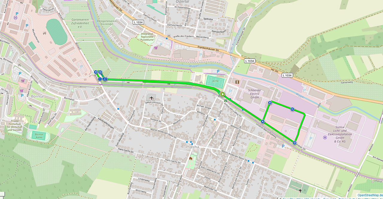 Die wegen Baumaßnahmen angepasste Strecke verläuft über einen abgesperrten Rundkurs entlang der Panzerstraße sowie im Bereich der Firma ELSO, der Kurt-Lindner-Straße und der Waldstraße (kleinere Änderungen vorbehalten).
