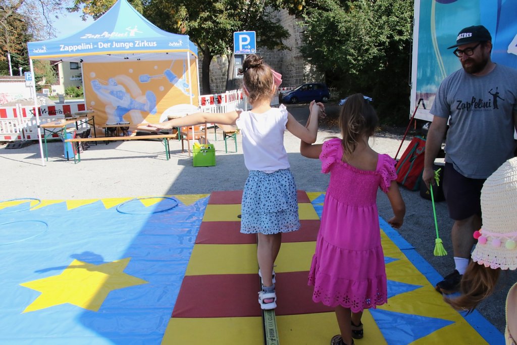 Jede Menge Trubel in und um das Museum Flohburg - zum 2. Kinderrechtefest kamen Jung und Alt in Scharen. Mit 20 Partnern - darunter unter anderem Feuerwehr und Polizei, Sportbund, Radio und Zirkus - sorgte man für buntes Programm. "Wir haben dieses Jahr leicht gehabt und das Kinderrecht auf Spiel, Freizeit und Erholung in den Mittelpunkt gestellt, das lässt sich in diesem Rahmen sehr gut umsetzen", sagt Astrid Lautenschläger vom Flohburg-Museum.