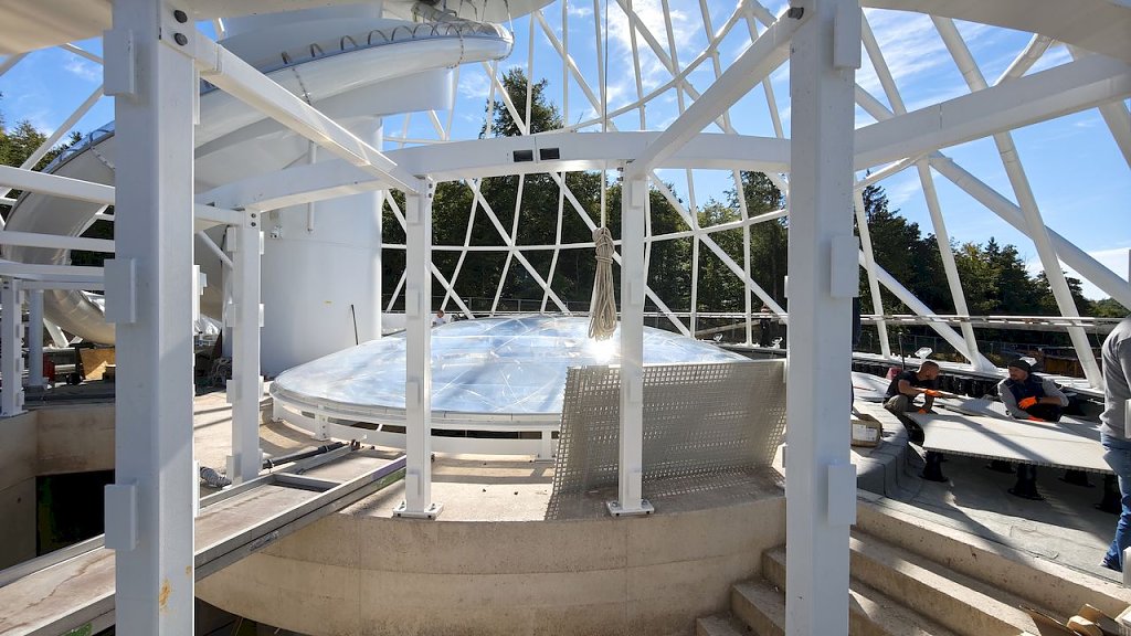 Weithin sichtbar ist er, der vermutlich größte Hexenbesen des Universums. In seinem Weiß aus Glas, Stahl und Beton strahlt er über die Bäume im nördlichsten Norden unseres Freistaates. Doch wie steht es um die Bauarbeiten, wann endlich ist das Projekt bei Rothesütte fertig. Die nnz konnte sich vor zwei Wochem exklusiv einen Ein-, Aus- und Überblick verschaffen…