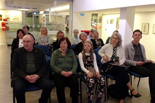 Darauf verwies auch Vera Angelstein als Vertreterin der Kreissparkasse in ihren Begrüßungsworten. Denn diese Ausstellung erzählt Geschichte – eine Familiengeschichte, in der Kreativität kein Zufall ist, sondern Lebenshaltung, Sprache und Erbe zugleich, so Angelstein wörtlich. Mutter, Tochter, Nichte und Cousine bezeichnete sie als kreatives Dreigestirn, das zeige, wie tief Kunst in einer Familie verwurzelt sein könne.