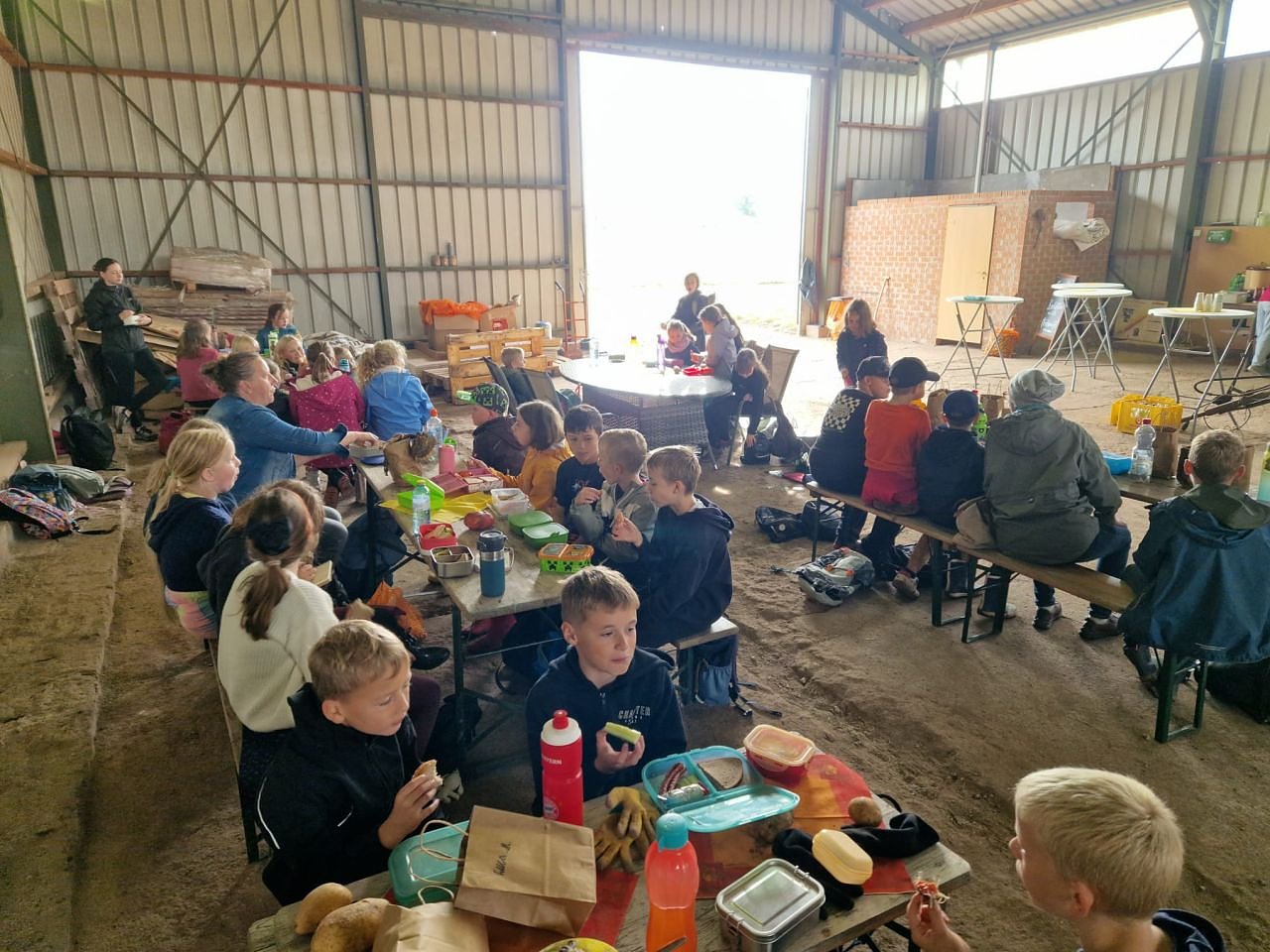 Gegen 9.30 Uhr Uhr haben alle gemeinsam gefrühstückt – endlich. Dabei konnte man Vögel sehen, die in der Scheune herumgeflogen sind. Danach sind die Viertklässler nochmal aufs Kartoffelfeld. Diesmal mit einem Auftrag. Inzwischen gab es nämlich eine Bestellung. Die Kinder bildeten Teams, um Säcke mit Kartoffeln zu füllen. Manche mussten große Säcke voll machen, andere kleine. Mir hat es gefallen, als wir die Kartoffeln gesammelt haben, meinte Josua.