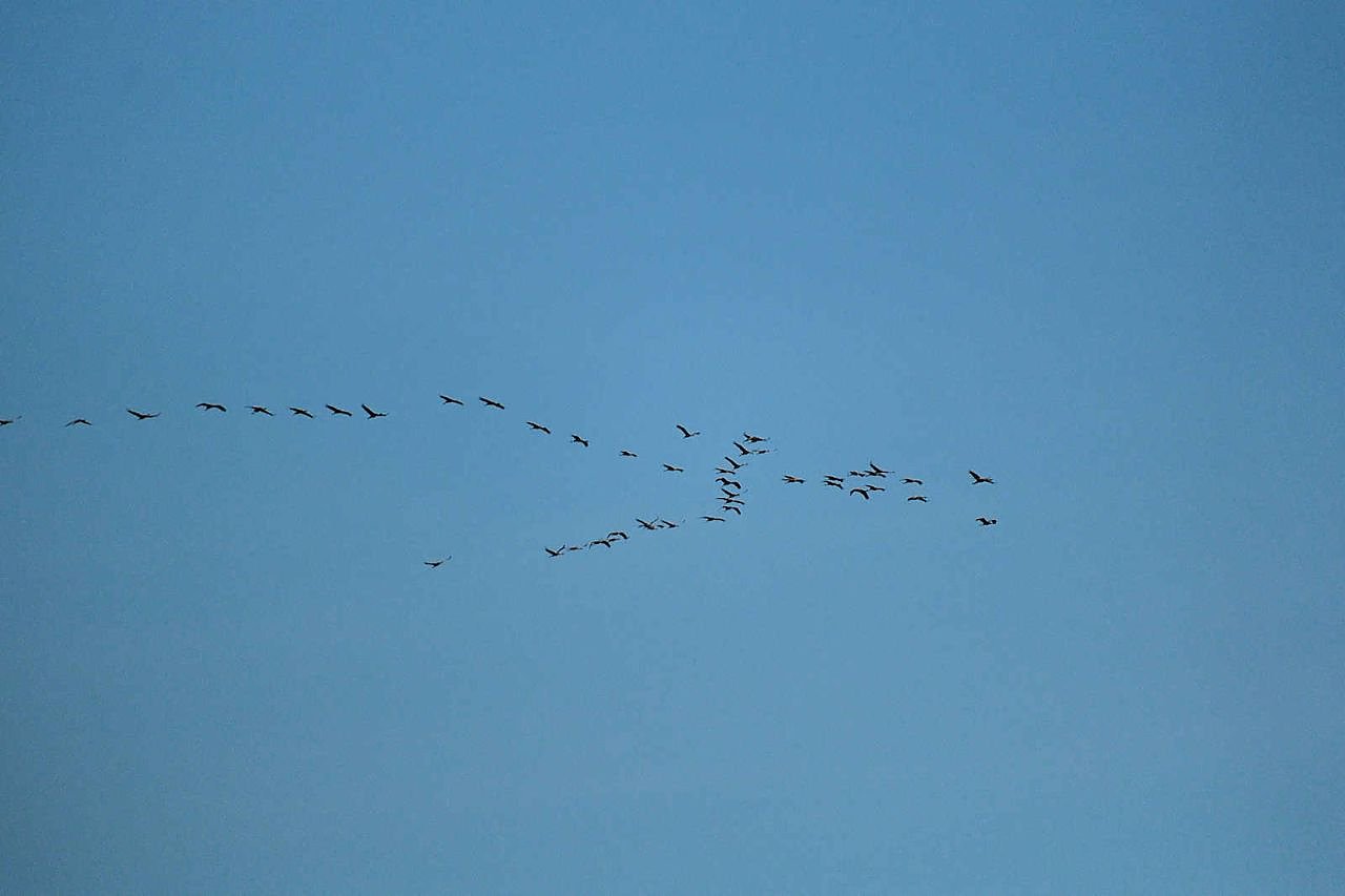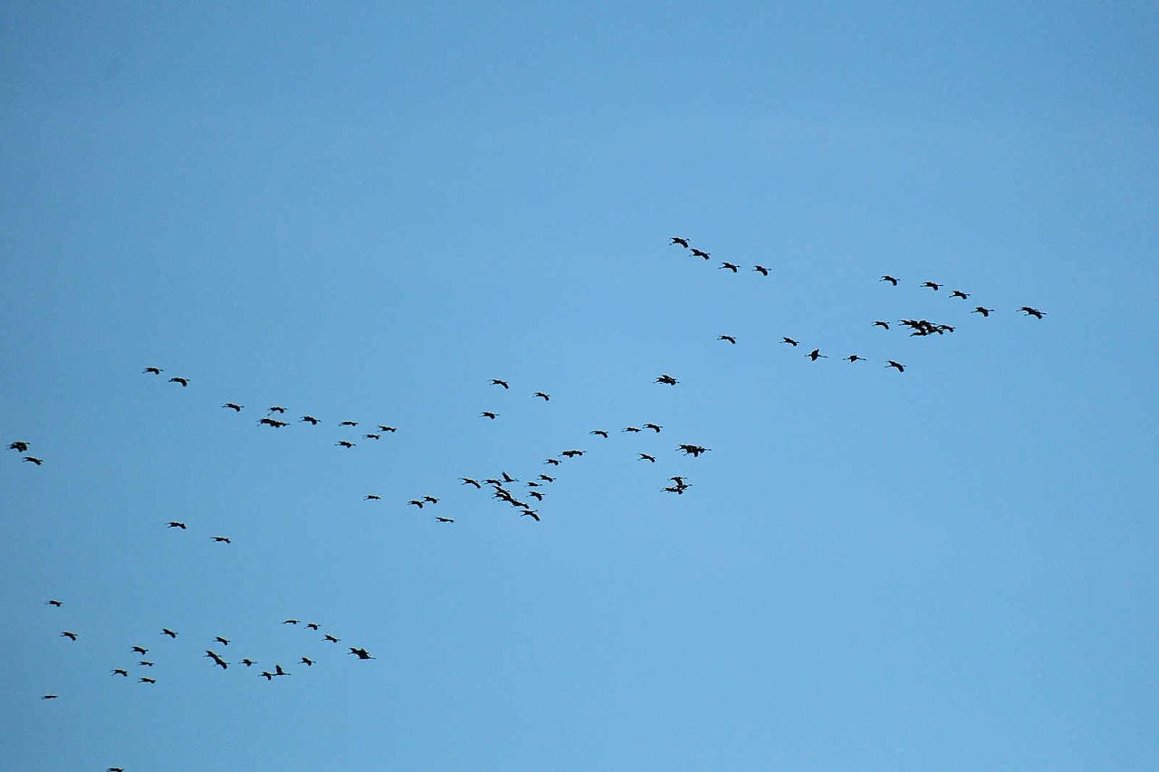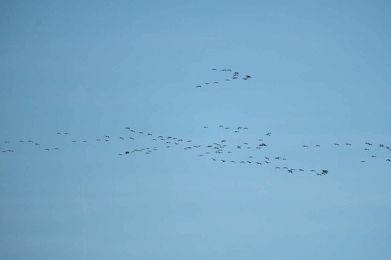 Für seine jüngste Fotogalerie musste Peter Blei nicht weit reisen, ein Blick nach oben genügte: über den Nordhäuser Himmel zogen die Kraniche...