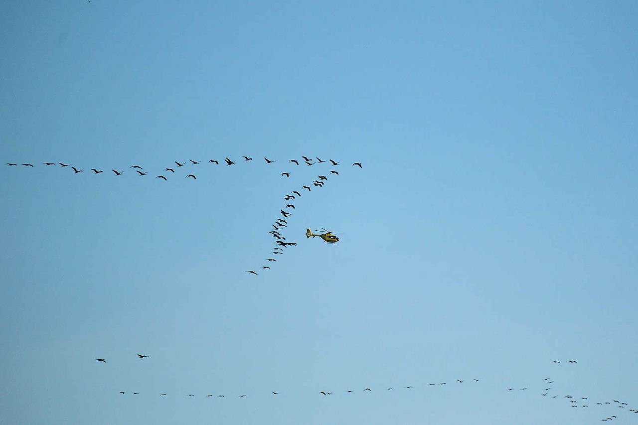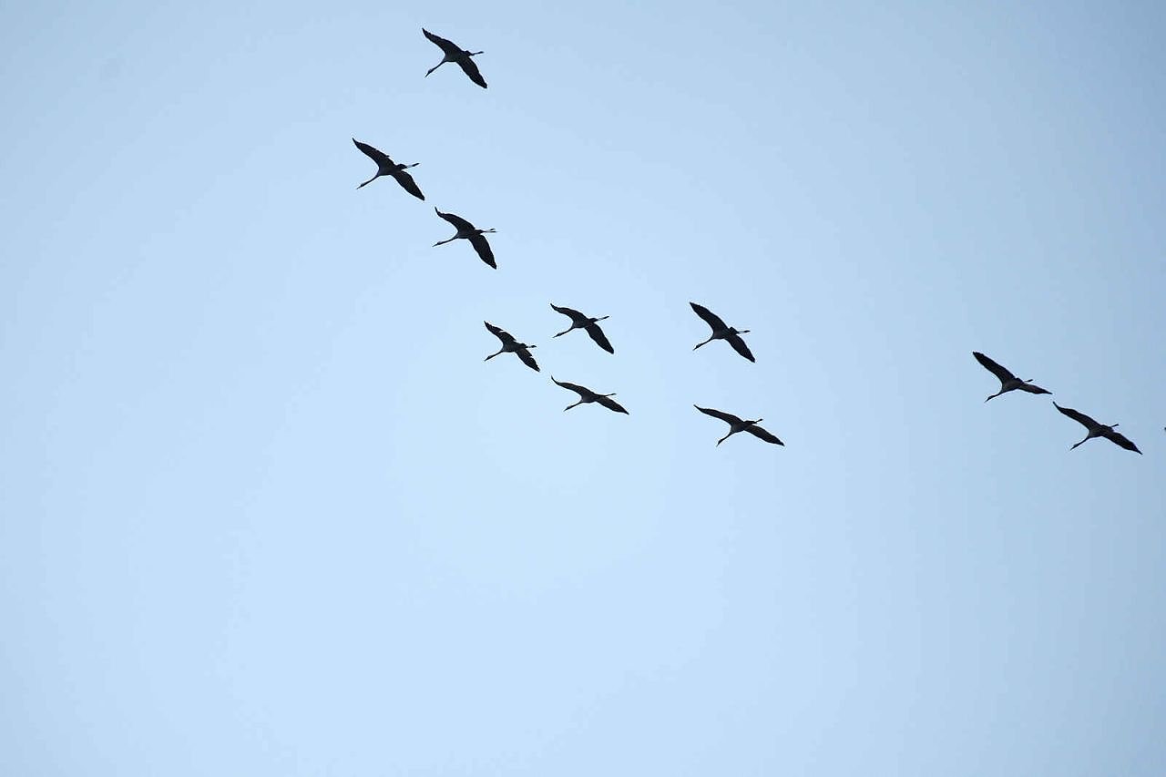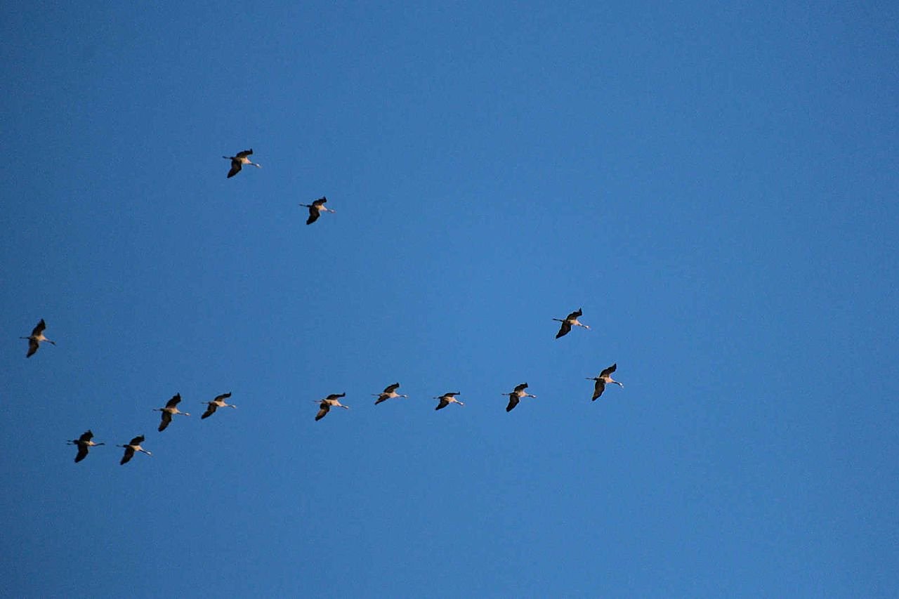 Für seine jüngste Fotogalerie musste Peter Blei nicht weit reisen, ein Blick nach oben genügte: über den Nordhäuser Himmel zogen die Kraniche...