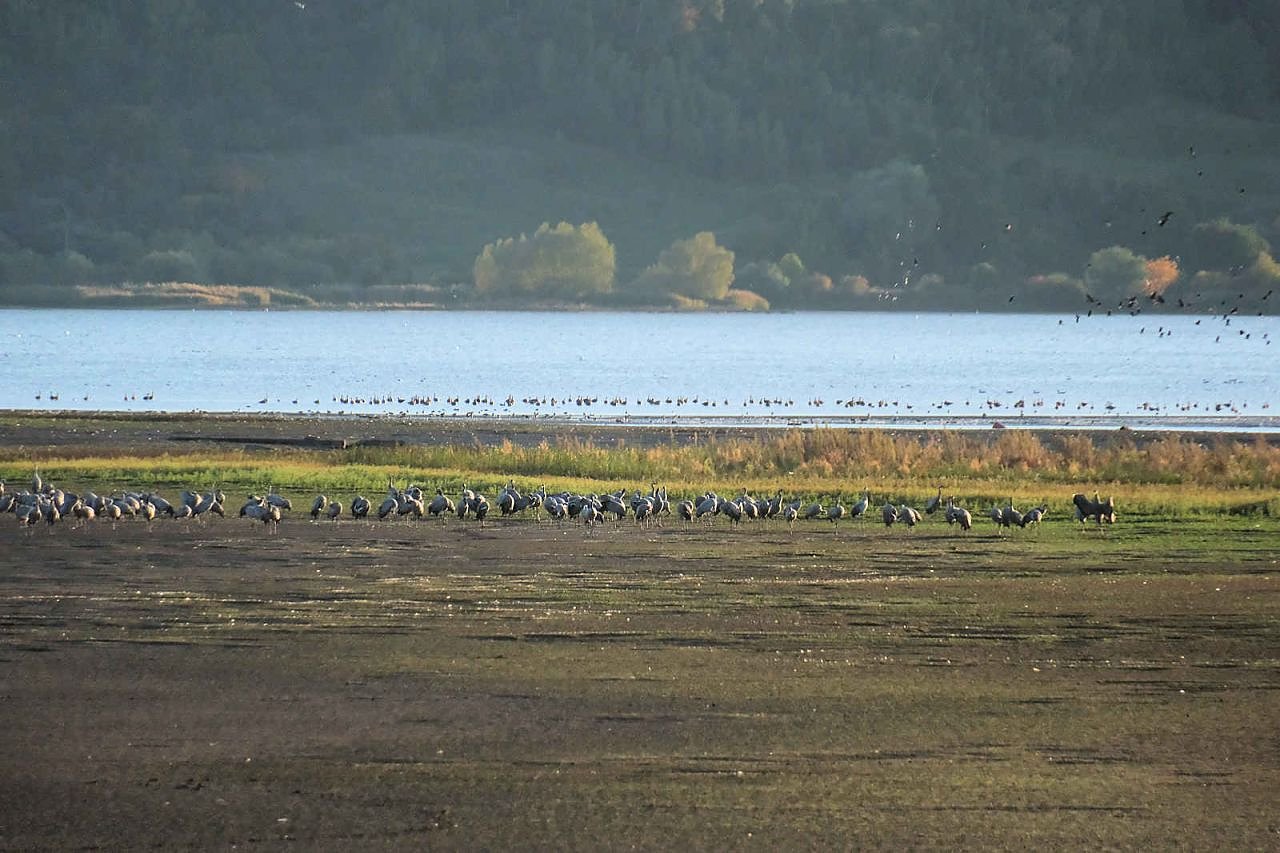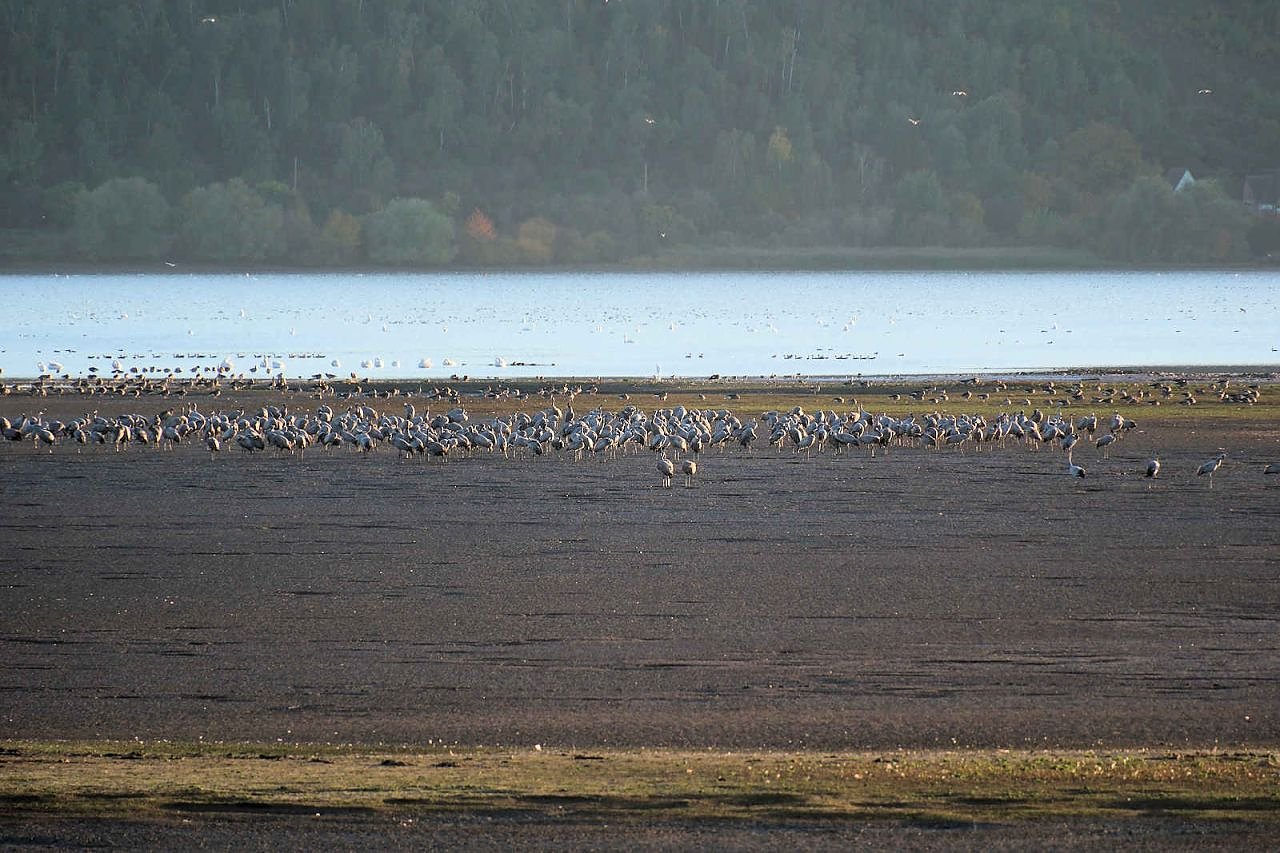 Tausende und Abertausende machten Station am Stausee, ein wahres Naturschauspiel. Jetzt lohnt es sich zur Kranich Beobachtung zum Stausee zu fahren.