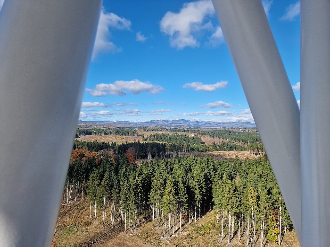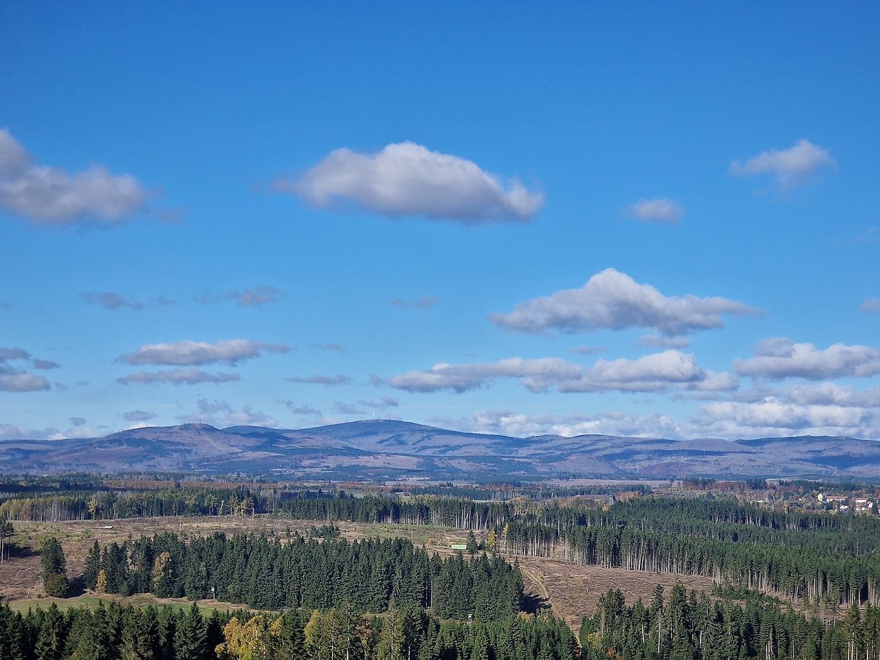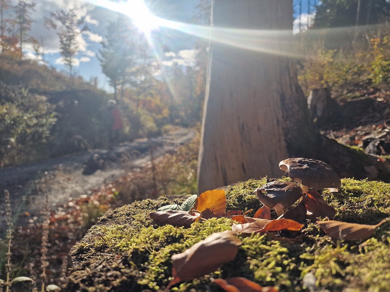Sonnenschein und herbstliche Farbenpracht waren die Wegbegleiter auf dem Weg zum Turm. Vom Schützenhaus bei Sülzhayn ging es über die alte Poststraße hinauf nach Rothessütte. Kurz vor dem Ort lugte schon der Hexenbesen hervor, von oben bot sich schließlich beste Aussicht über Harz und Herbstwald.