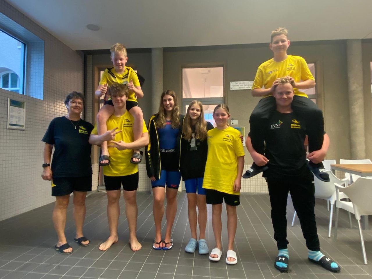Hannes Holtz (JG 2014) als jüngster Starter erkämpfte Bronze in 50 m Brust und verbesserte bei all seinen 8 Starts deutlich die Meldezeiten, besonders in 50 m Freistil. Karl Höpfner (JG 2013) Silber in 100 m Brust und überraschend in 100 m Lagen, sowie Bronze in 50 m Delphin und 50 m Rücken stand auch mehrfach im Kinderfinale am Start.