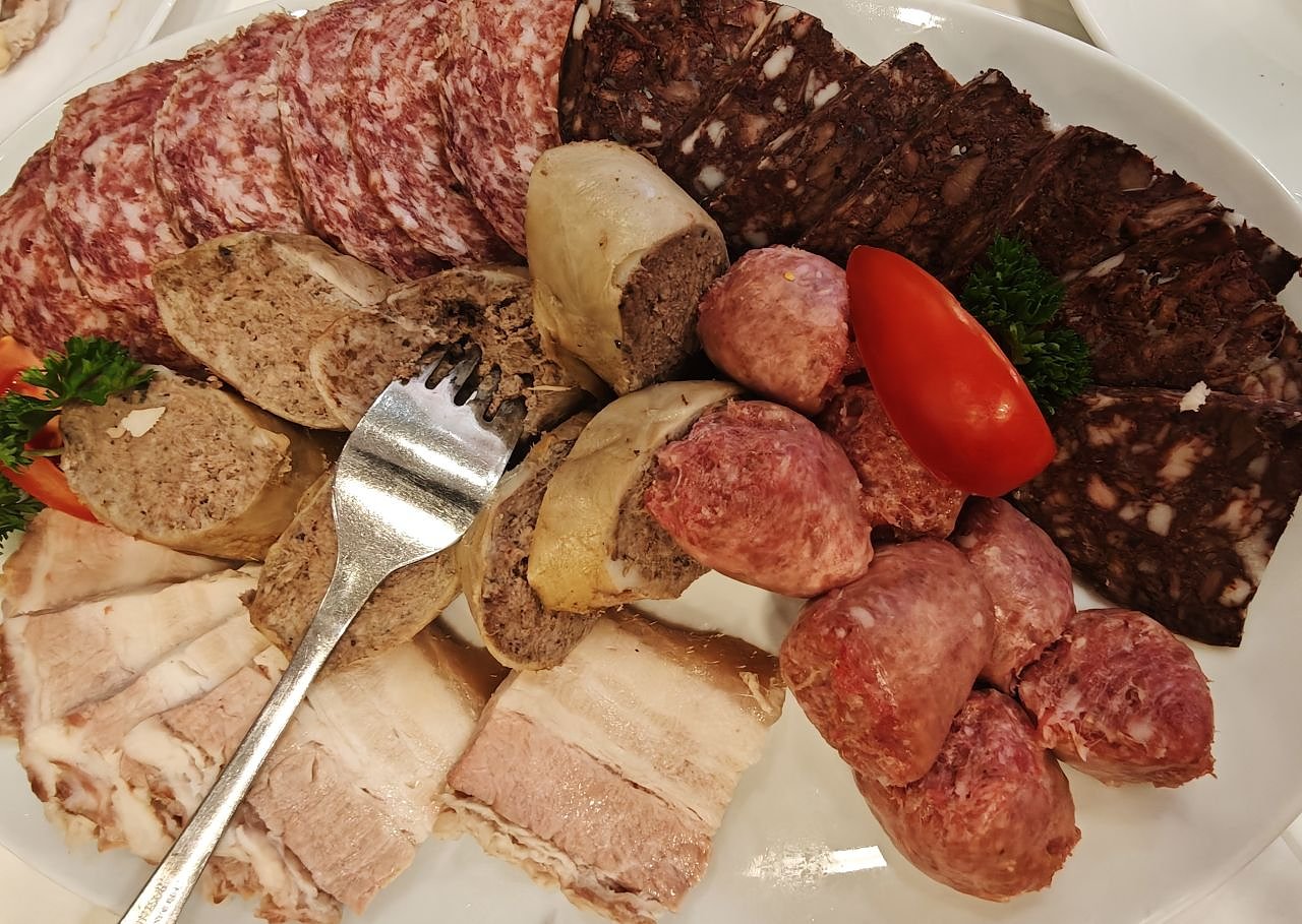 In einer anschließenden Talkrunde, die mehr und mehr im Gegrummel an den Tischen unterging, wurden keine Neuigkeiten verkündet, dafür Eichsfelder Stracke verteilt. Mit einem Solo aus einem Jagdhorn wurde schließlich das eigentliche Schlachteessen freigegeben und viele Gesichter zeugte von Erleichterung der Gäste. "Sau tot! war nicht dabei.
