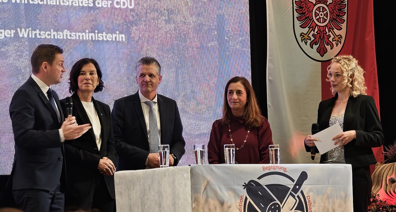Organisator war und ist die Mittelstandsvereinigung der CDU (MIT) in Nordthüringen. Im vergangenen Jahr war in der Festhalle des Ortsteils von Leinefelde-Worbis der wahlkämpfende Friedrich Merz der Superstar. Der hat heute – weil nun schon Bundeskanzler - in Brasilien einen Termin und verschenkt einige Millionen Dollar. Dafür hat er seinen Kanzleramtschef Thorsten Frei in die katholische Enklave geschickt.