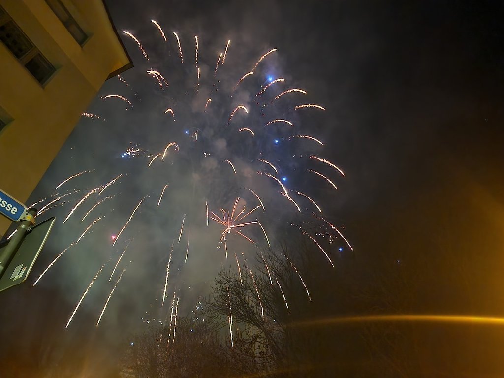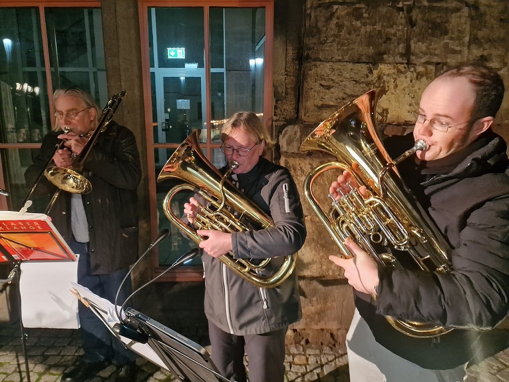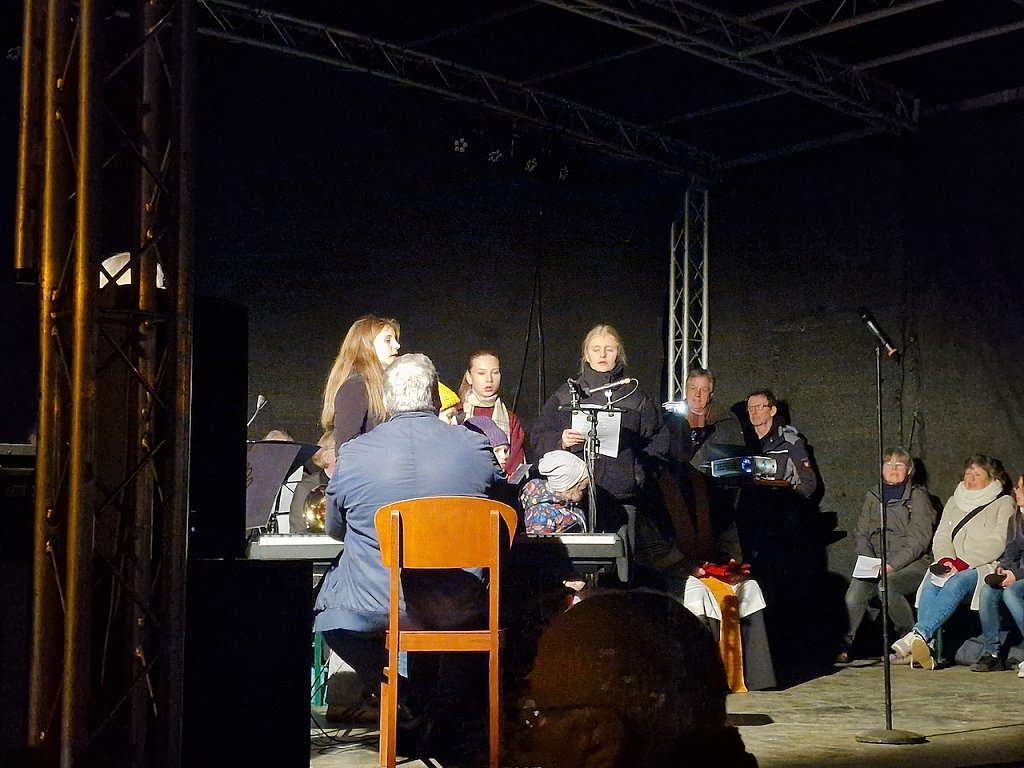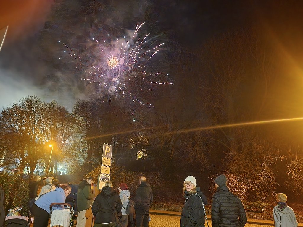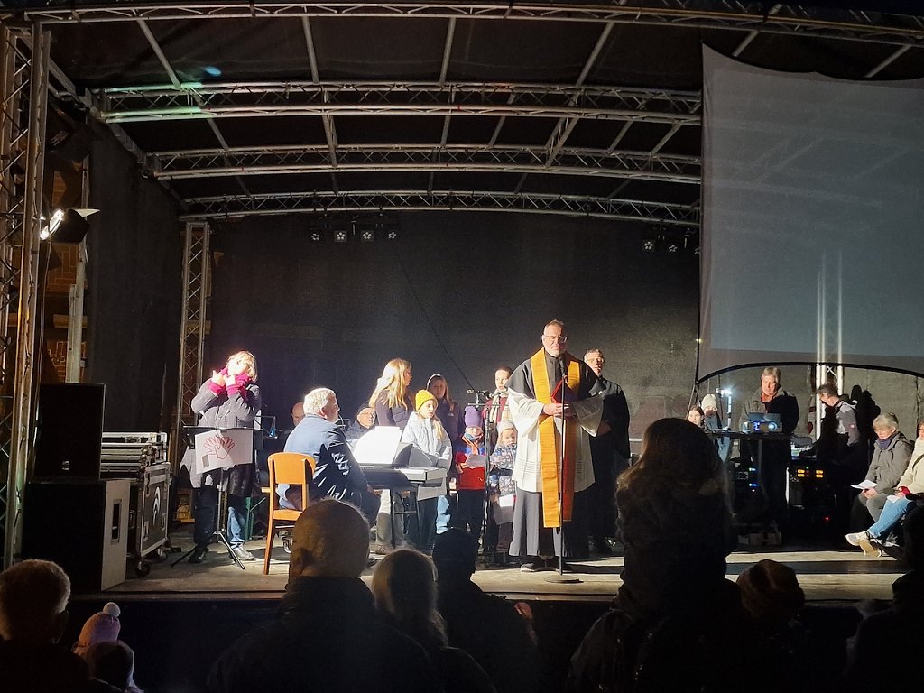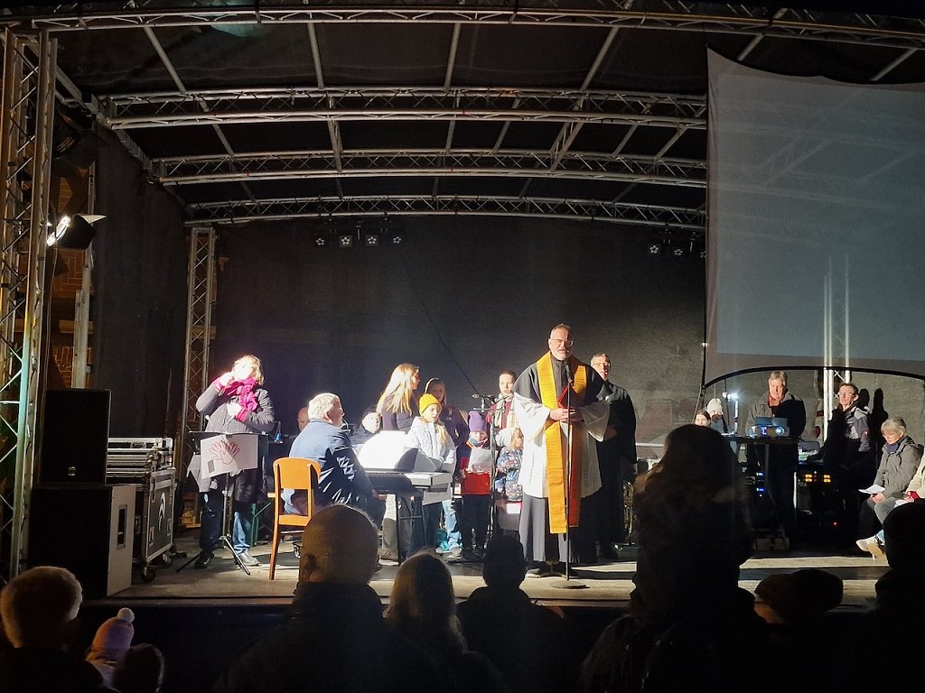 Mit dem letzten Tageslicht begann am späten Nachmittag die traditionelle Martinifeier vor der Blasiikirche. Im ökumenischen Gottesdienst wurde die Martinsgeschichte erzählt und gesungen, danach ging es im Lichterzug auf den Rathausplatz, wo die Brezeln geteilt und das Feuerwerk bestaunt werden konnte.