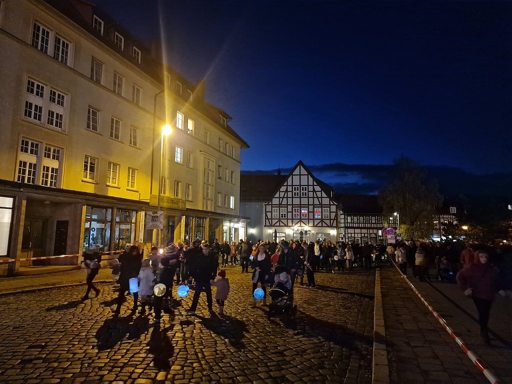 Der Herbst hat es heute gut gemeint mit den Nordhäusern: ein milder Abend, freie Sicht auf den Petersberg und dazu ausreichend Martinsbrezel für jedermann...
