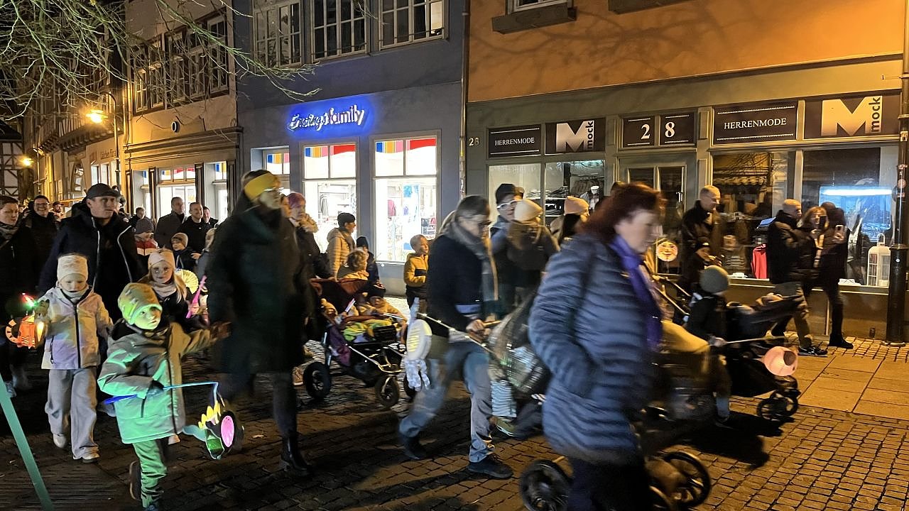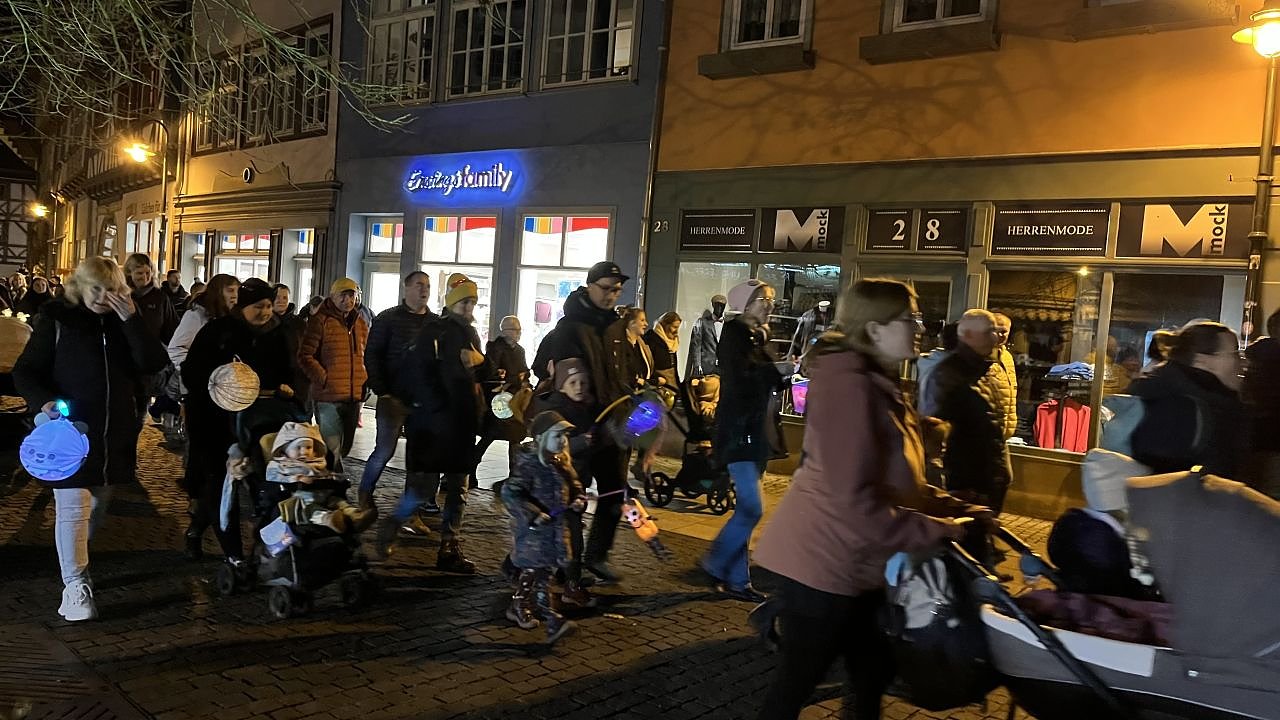 Mit einem Spielmannszug und der Freiwilligen Feuerwehr voran und schönem klaren Wetter, machten sich unzählige Kinder mit ihren glitzernden und blinkenden Laternen auf den Weg zum Jahnplatz.