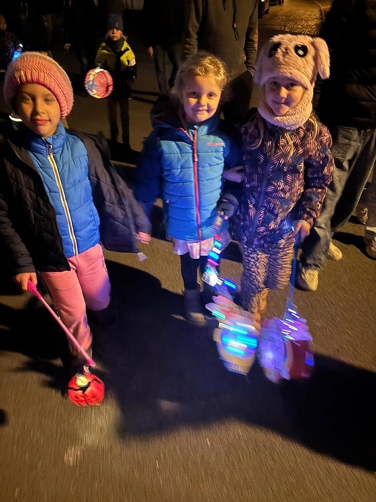 Mit Martinsliedern und zahlreichen leuchtenden Laternen zogen wir durch die Straßen von Stockhausen. Natürlich durfte dabei das Pony von unserem Heiko, mit dem Heiligen Martin darauf, nicht fehlen.