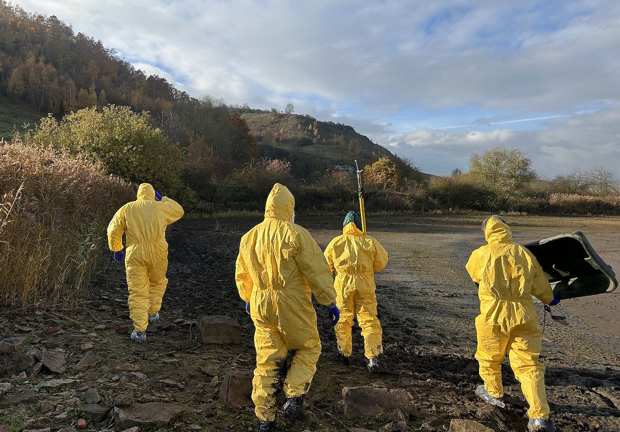 Die Bergung der Tiere rund um die Numburg am Stausee Kelbra gestaltet sich schwierig. Nach einem ersten Einsatz der freiwilligen Feuerwehren der Gemeinde Kyffhäuserland am Wochenende des 18. Und 19. Oktobers übernehmen fachlich geschulte Mitarbeiter aus der Kreisverwaltung die Bergung der Tiere.
