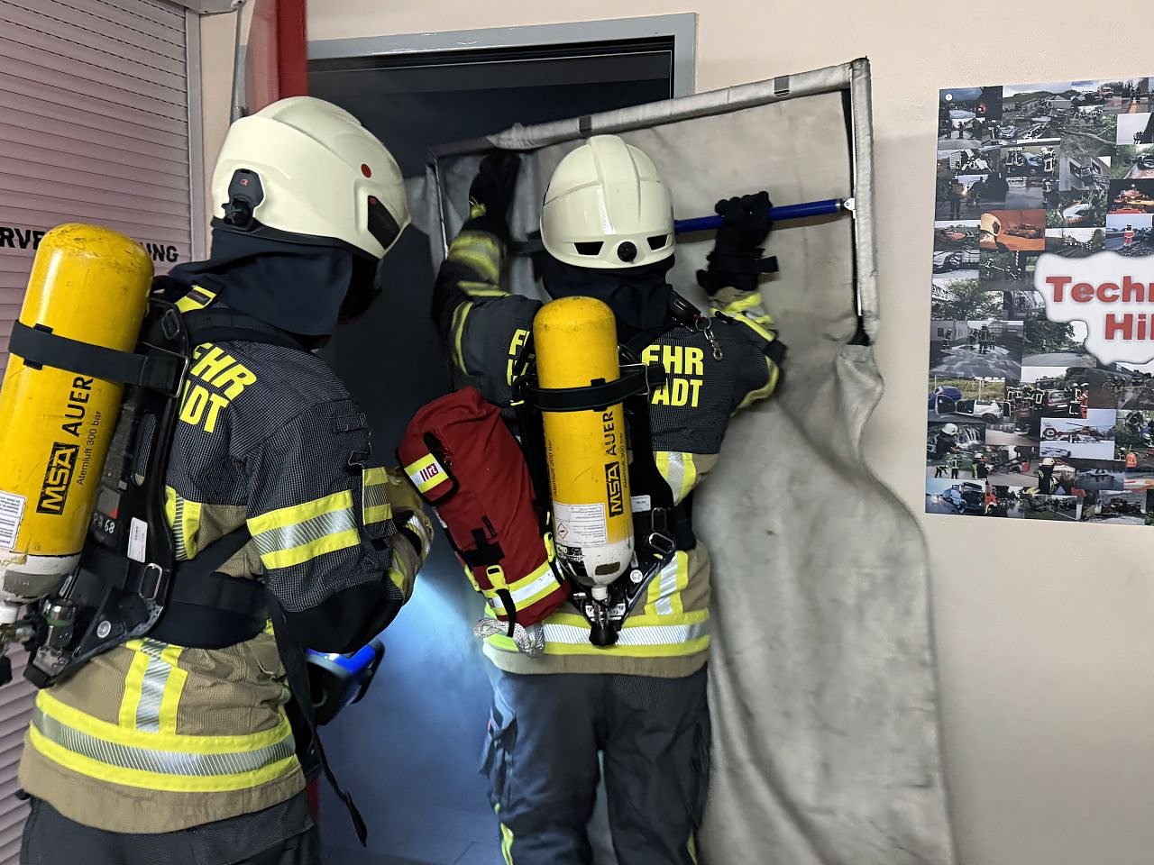 Und auch an der Einsatzstelle müssen die Atemschutzgeräteträger wissen, was sie neben Schläuchen, Strahlrohr und Brechwerkzeug mitnehmen müssen. Geübt wurde außerdem das Öffnen von Türen, die Personensuche in verrauchten Räumen und die Handhabung des Strahlrohrs.