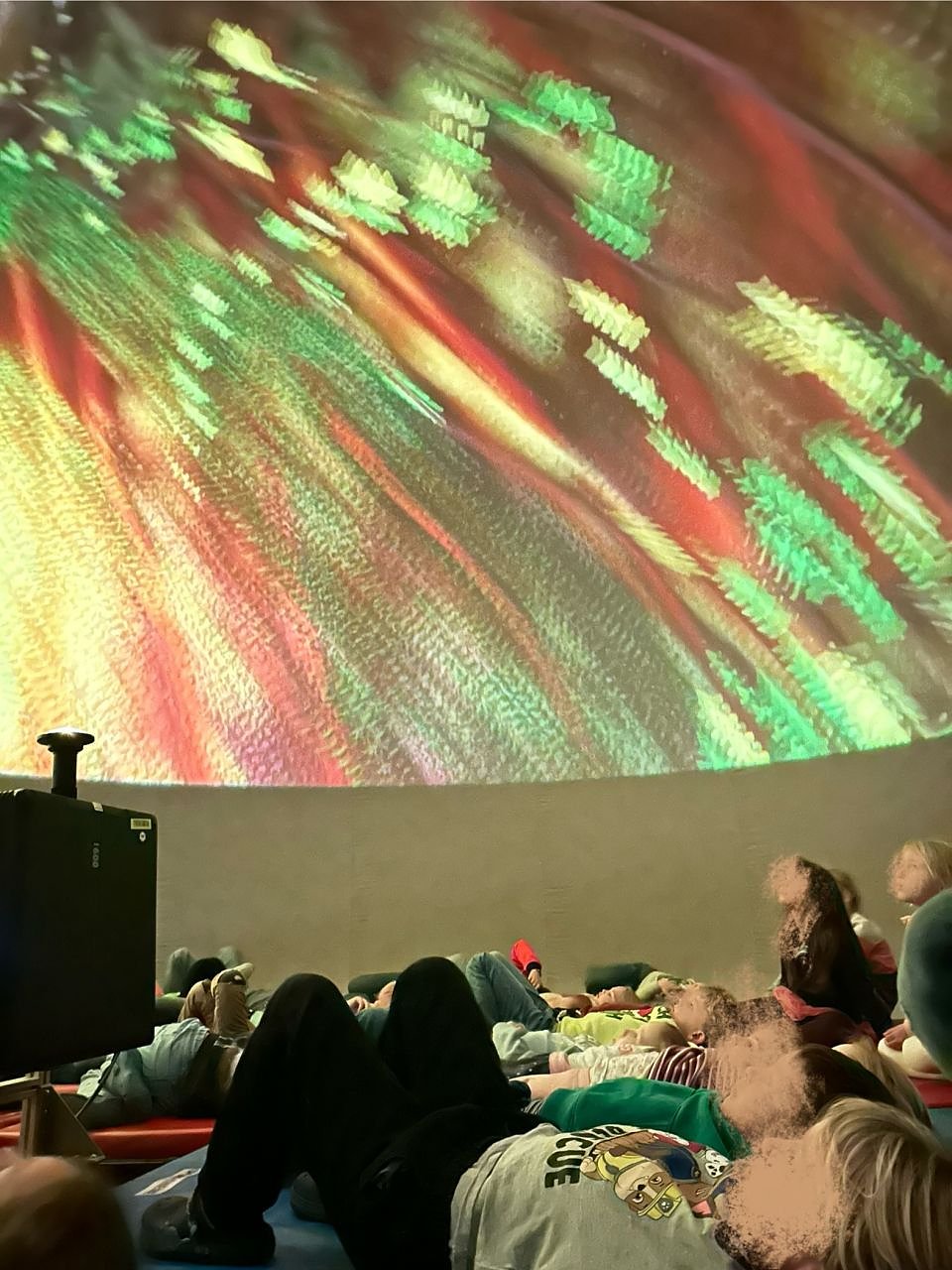 Ein besonderes Highlight war unser eigens eingeladenes Schulplanetarium in der Turnhalle. Unter der großen Projektionskuppel konnten die Kinder den Sternenhimmel erleben, Planeten entdecken und einmal mitten im All stehen – ein beeindruckendes Erlebnis für alle. Mit der Animation Magic Globe erhielten sie einen kindgerechten Überblick zu teils behandelten Inhalten.