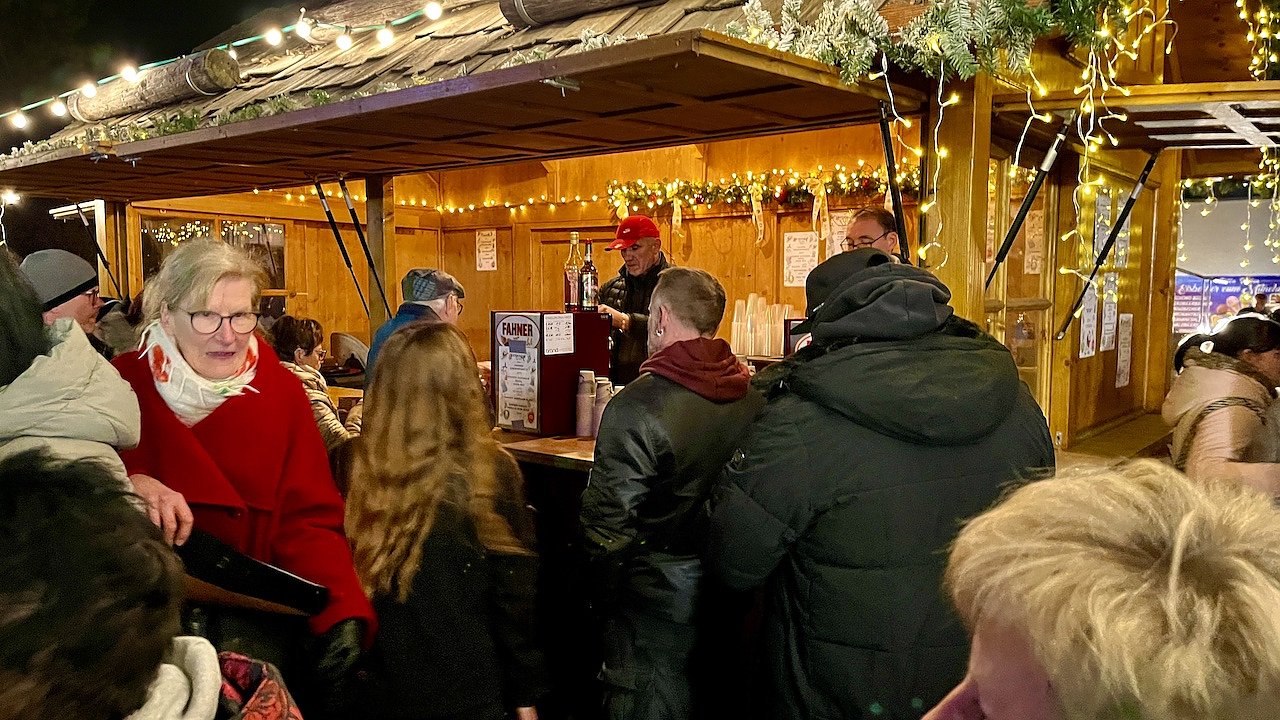 Wer nicht über die Eisfläche schlittern wollte, konnte es sich an einem der Weihnachtshütten mit Glühwein, Suppe und Thüringer Bratwurst gemütlich machen.