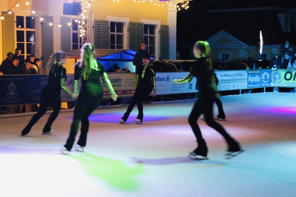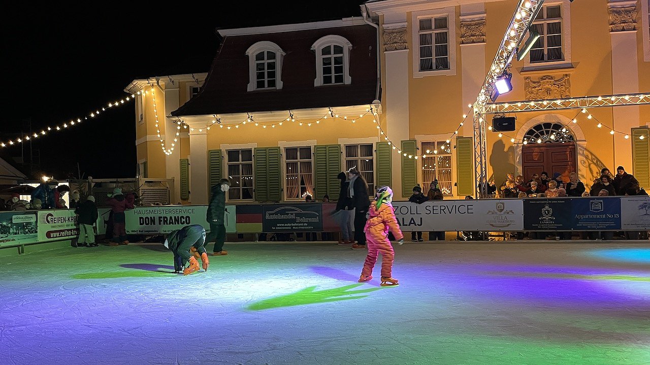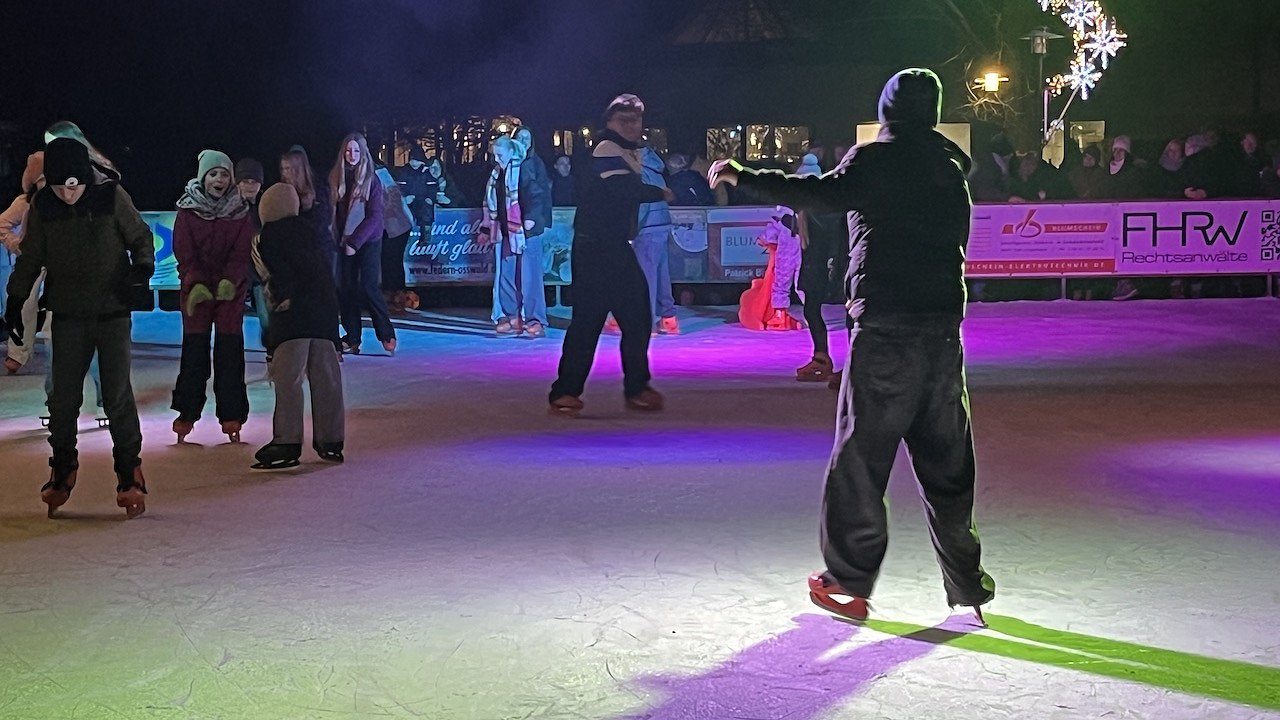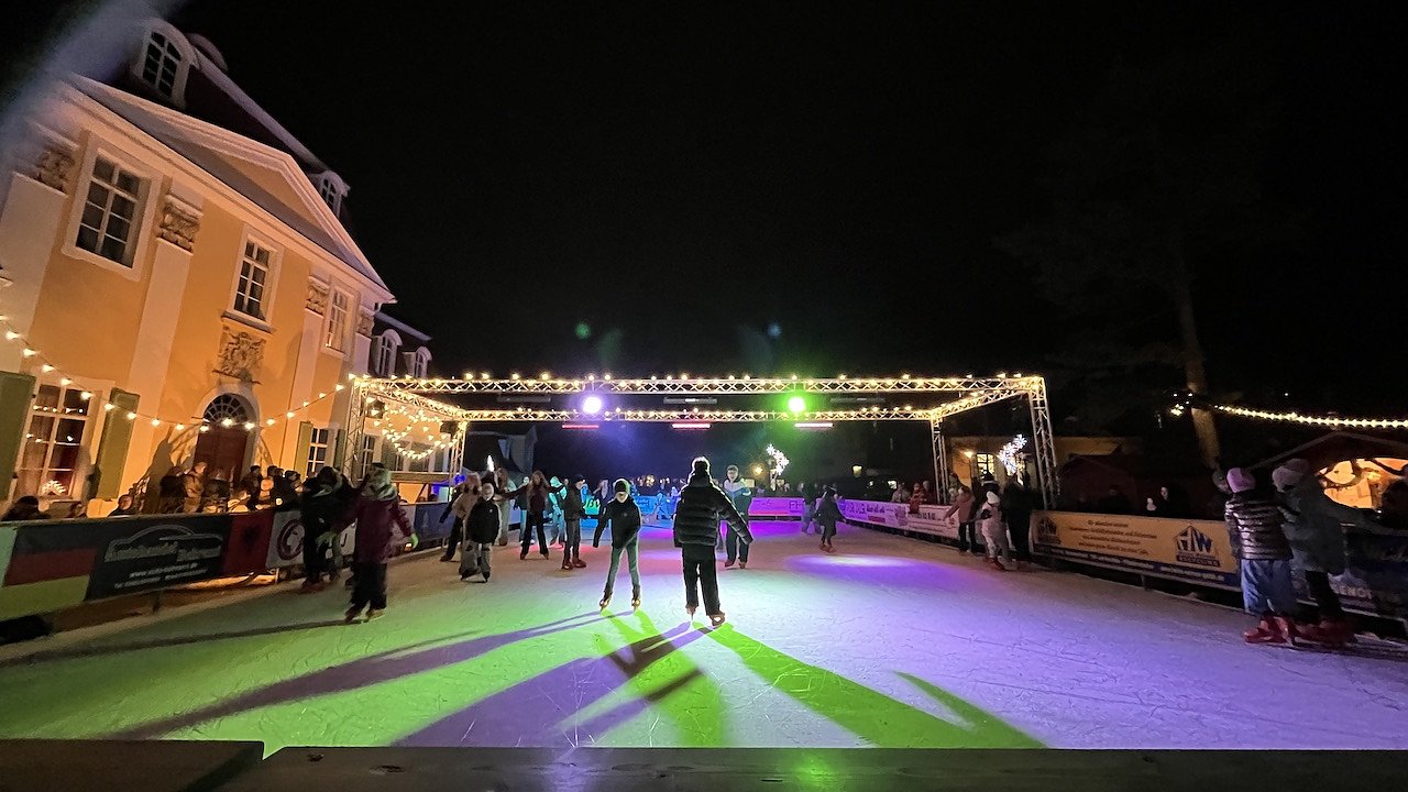 Auf einer Eislauffläche von 300 m² (12 × 25 m) begrüßte Moderator Hardy Krause die zahlreichen Gäste, die zu diesem besonderen Ereignis in den Schlösschenpark geströmt waren.