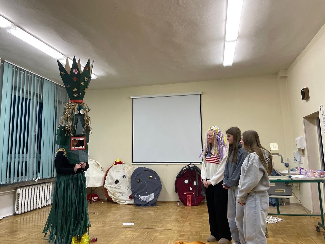 Im kreativen Prozess wurde recherchiert, geschrieben, gebaut und gebastelt. Die Schülerinnen und Schüler entwickelten nicht nur die Szenen selber, sondern fertigten auch ihre Kostüme und Requisiten eigenständig an. So wuchs das Projekt zu einem eindrucksvollen Zusammenspiel aus Tanz, Schauspiel, musikalischen Elementen und lebendigen Dialogen.