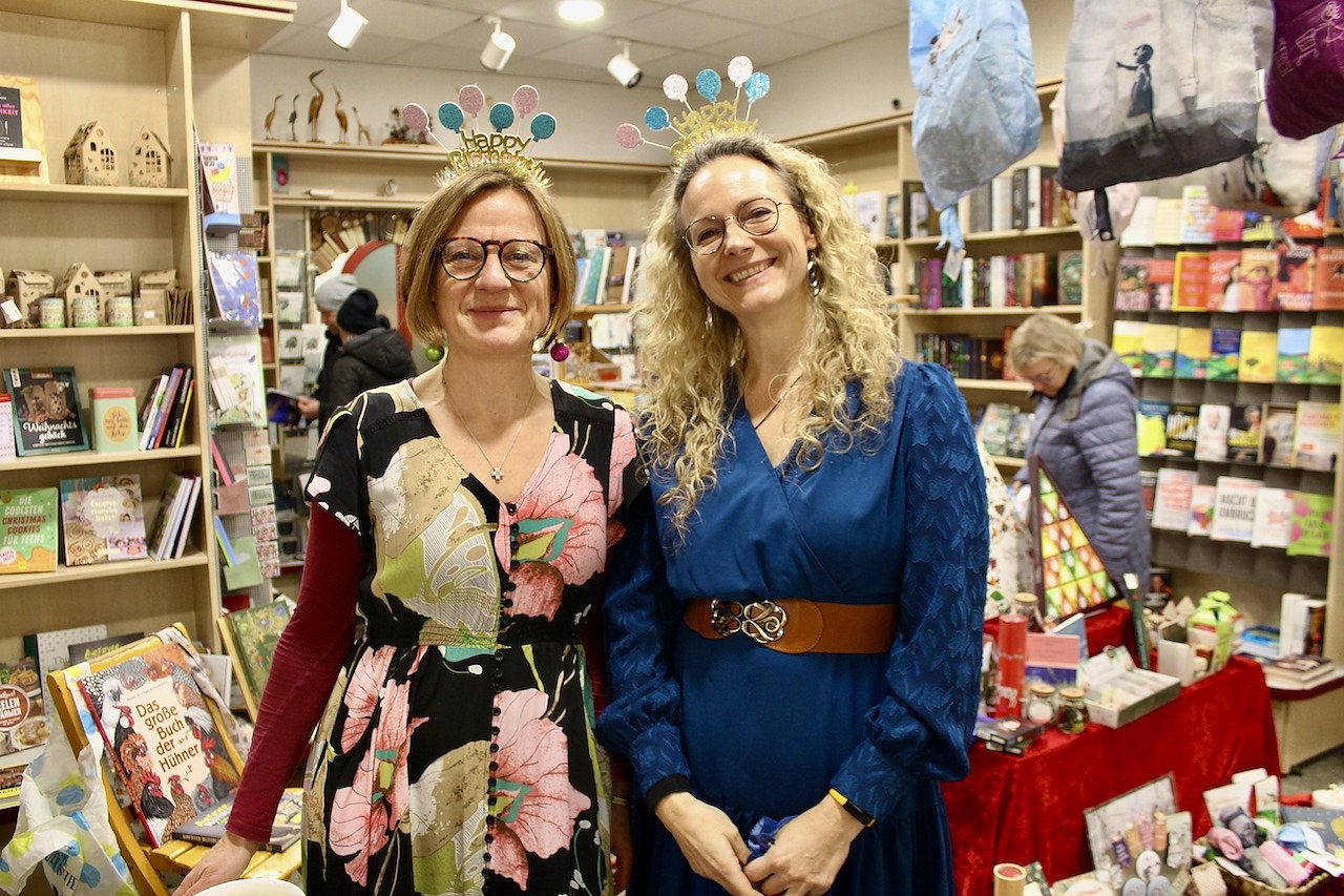 Auch in der Mühlhäuserstrasse 39 bei den "Buchgeschwistern", wurde kräftig geprostet. Inhaberin Anja Wurschi und ihre Mitarbeiterin Yvonne Waclawczyk feierten mit einem Sektempfang das einjährige Bestehen des Buchladens.