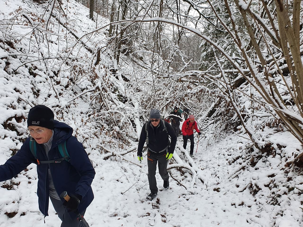 Beim 44. Südharz-Hunderter am 3.12.2022 lag Schnee. Auf den ersten 10 Kilometern mussten wir auch einige, von umgestürzten Bäumen beeinträchtigte Wegabschnitte bewältigen. (Foto: Bodo Schwarzberg)
