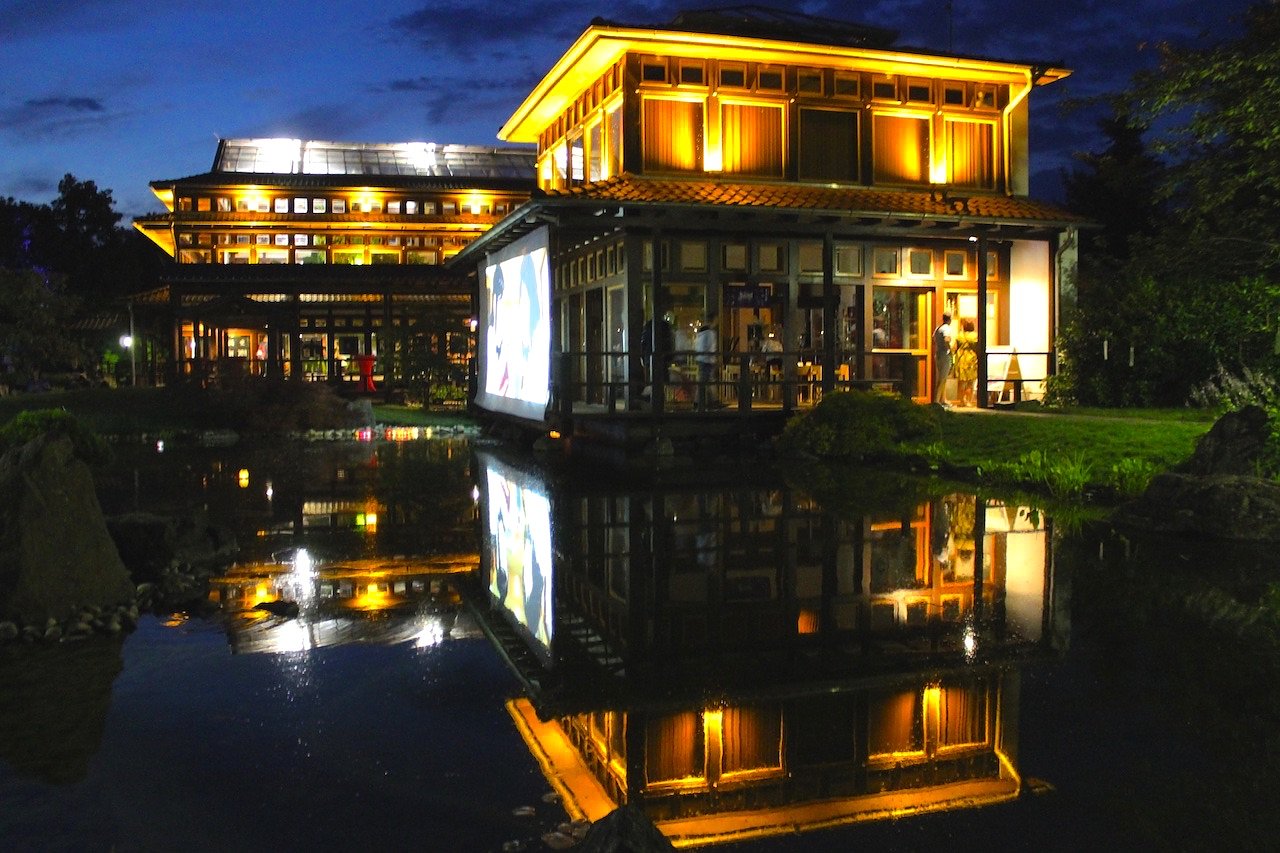 Ton- und Klangkollagen sorgen für die passende Akustik, zwei LED-Wände illustrieren die Geschichte der Kurstadt und die Verwandlungsfähigkeit des Japanischen Gartens über Jahr von der Kirschblüte und Hanami-Fest bis zu Teezeremonien und dem Kinderfest Kodomo No Hi im Sommer.