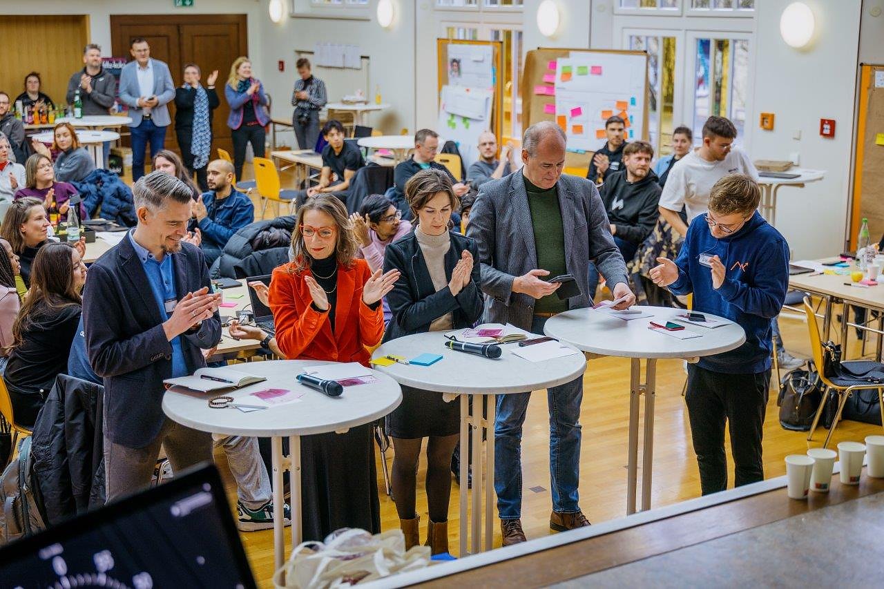 Möglich wurde das Format durch zahlreiche Partner: IONOS stellte die KI Plattform, EVN, Maximator, Techniker Krankenkasse und Stadtwerke Holding sorgten mit Sachspenden und Unterstützung für gute Rahmenbedingungen, der de:HUB Photonics & Digital Experience Jena lud alle Teilnehmenden am Samstag zum Pizza Mittag ein.