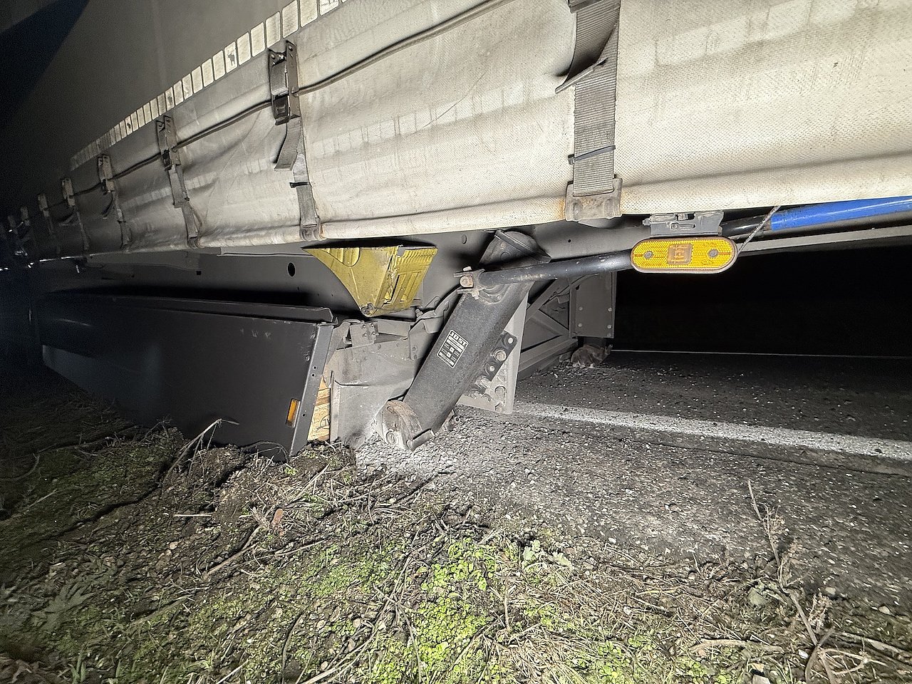 Kurz nach dem abgesetzten Notruf sei ein LKW rückwärts die B4 runtergefahren und habe angehalten. Erst jetzt löste sich das Rätsel auf. Bei dem LKW handelte es sich um das Zugfahrzeug, das seinen Sattelauflieger verloren hatte. Augenscheinlich hat der Fahrer des LKWs es nicht wirklich sofort mitbekommen, dass er plötzlich ohne Sattelauflieger fährt. Anders kann man es nicht nachvollziehen, dass er noch knapp 500 Meter solo weitergefahren ist.