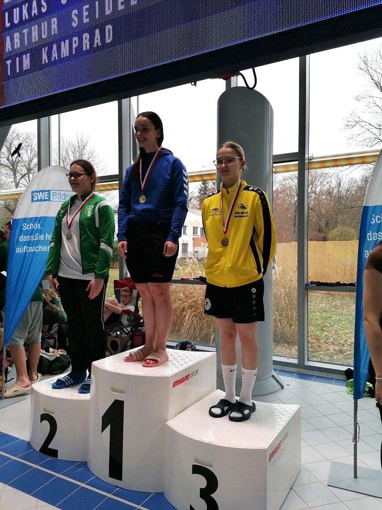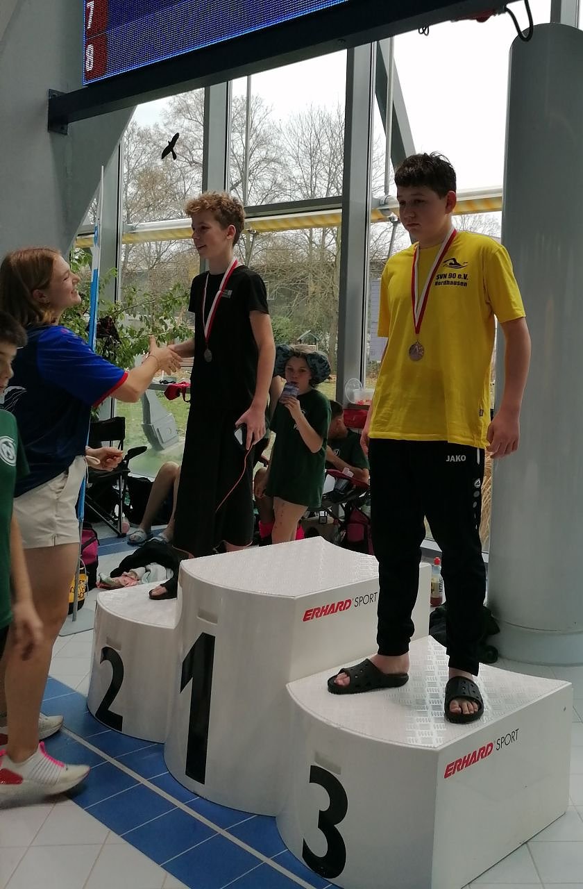 Wlada Orekhow erreichte einen Medaillensatz -Gold-Silber- Bronze mit ihren 3 Starts (Rücken und Freistil). Tom Falke erkämpfte ebenfalls einen Medalliensatz im Brustschwimmen 50, 100 und 200 m und Silber noch in 200 m Rücken. Lenya Kurtz zeigte auf der langen Strecke ihre Stärke -Gold in 200 m Delphin und 200 m Rücken sowie Bronze in 100 m Delphin. Auch Lea Vollborth lag in der langen Strecke vorn - 200 m Rücken Gold. In 100 m Delphin belegte sie noch Platz 3. Die Brüder Paul und Karl Höpfner erkämpften sich beide jeweils 2 Bronzeplätze, Paul auf der langen Strecke 200 m Brust und 200m Rücken und Karl in seiner Hauptlage 50 und 200 m Brust.