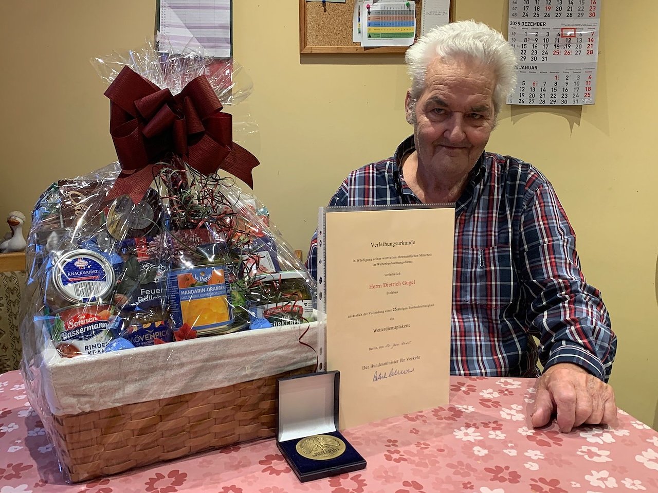 Dietrich Kugel sendet seit 25 Jahren Wetterdaten an den Deutschen Wetterdienst und erhielt dafür eine Ehrenmedaille vom Bundesministerium (Foto: Schramm)