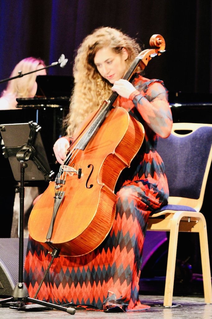 Rosalina Genchev verzauberte mit ihrem virtuosen Spiel am Flügel. Als die Filmmusik aus dem berühmten Haselnuss-Aschenbrödel-Weihnachtsklassiker erklang, ging ein Raunen durch das Zuschauerparkett. Melissa Hart, Meisterin ihres Faches, tanzte förmlich mit dem Bogen über die Saiten ihres Cellos und lies die Töne somit durch den Saal schweben.