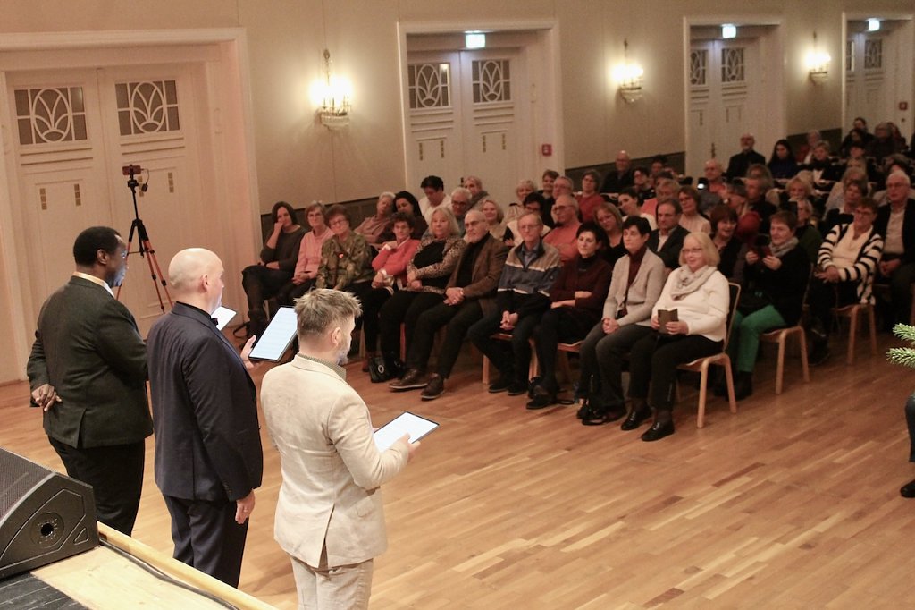 Getragen von den beiden ausgezeichnet aufgelegten Damen am Cello (Melissa Hart) und Rosalina Genchev (Piano) entfalteten die FELLAS ein weihnachtlich-unterhaltsames Programm voller Humor und Emotionen. Egal ob einzeln oder im Satzgesang übten die drei Tenöre sich in permanenter Gänsehautproduktion beim verzückten Publikum. Auch das hohe C in Nessun dorma welches gleich zu Beginn aus Marvin Scotts Goldkehle zu hören war, versetzte die Zuhörer in großes Erstaunen. Darauf folgten Jazz, Gospel, Pop, Beyonce-Titel, christliche Weihnachtslieder, aber auch Simon & Garfunkel-Klassiker.