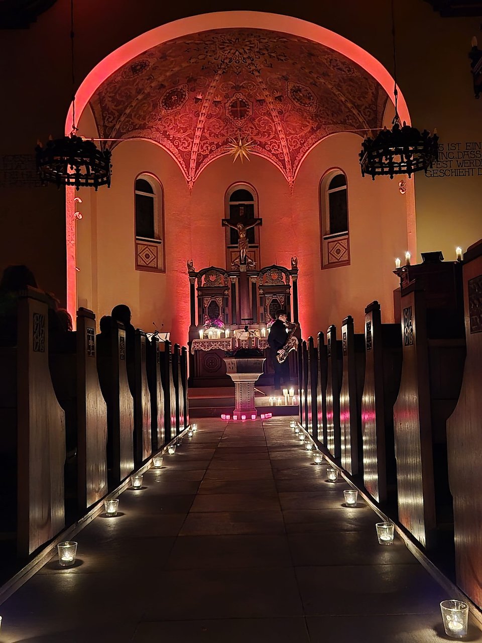 Innehalten, Hören, Singen, Musizieren, Beten und das in einer Kirche, die in Kerzenschein getaucht ist.