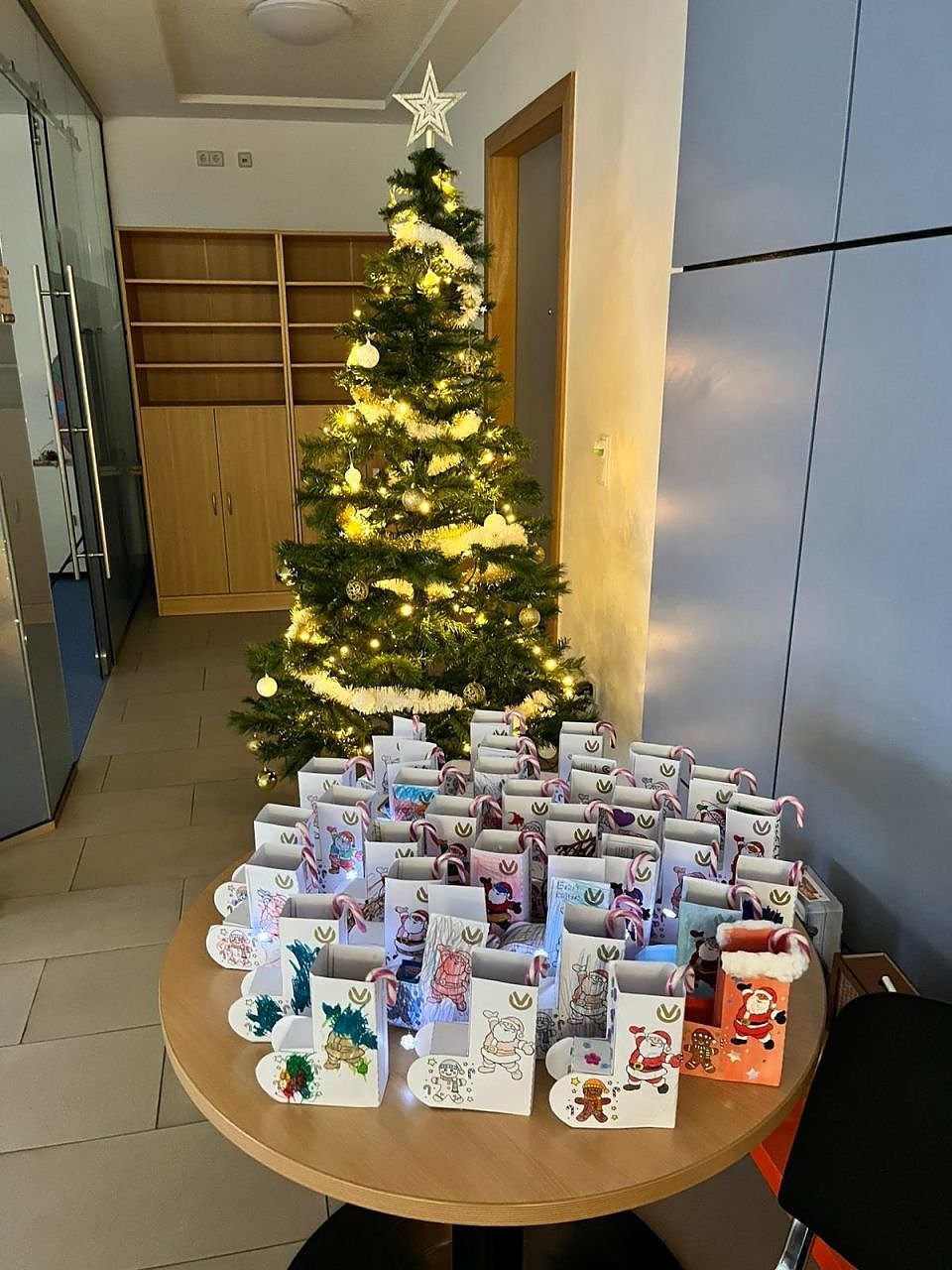 Dort wurden die Stiefel gesammelt und für den Nikolaustag vorbereitet. Am 7. Dezember 2025 erfolgte schließlich die Ausgabe der gefüllten Stiefel im Büro von Julia Theuerkauf. Für viele Kinder war es ein spannender Moment, ihre gestalteten Stiefel wieder in den Händen zu halten – nun gefüllt und festlich überreicht.